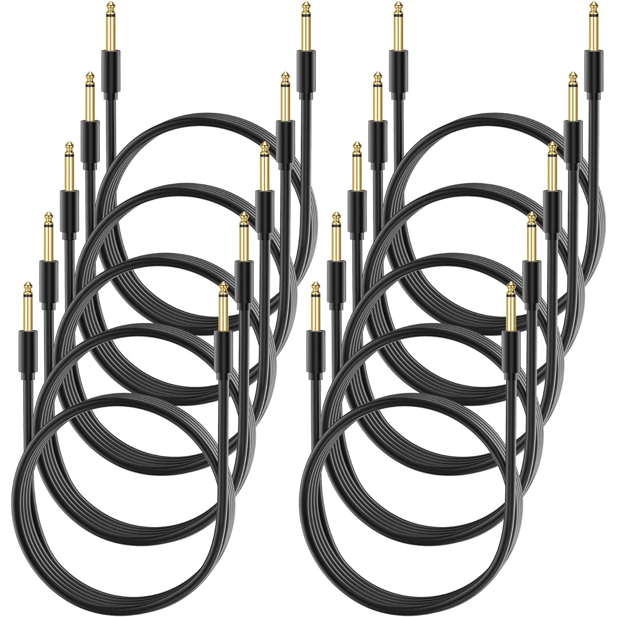 Enough usage: This package includes 10 pieces of 1/4 inch guitar cables. Each piece is about 10 feet/3 meters, with abundant quantity, enough quantity to choose and replace, easily meet your daily needs. Say goodbye to cable noise: Our bass guitar cable uses a thick copper wire core and gold-plated connectors to ensure audio transmission performance without delay. Conductive PVC and spiral copper wire can effectively shield interference signals, maintain no noise and fidelity, keep away from cable hums and buzzing, and your music will have its original sound. Enjoy clear and pure music. No kinks or rust: High quality PVC sheath prevents this equipment cable from getting kinked or tangled. 24K gold plated connectors are oxidation and rust resistant. It's easy to store, can be used on stage or in the studio, and is serviceable to ensure an uninterrupted and stable connection. 1/4" Straight Connector: This electric guitar amplifier cord has a 1/4" TS to 1/4" TS connector to play music well and provide ideal sound effects. Wide range of uses: Our electric guitar cable is compatible with standard 6.35mm auxiliary jacks and auxiliary inputs, such as guitars, mixing boards, pedals, amplifiers, basses, keyboards, PA systems, studio harmonizers, and other devices with 1/4" inputs. Suitable for devices with ports, perfect for music projects.