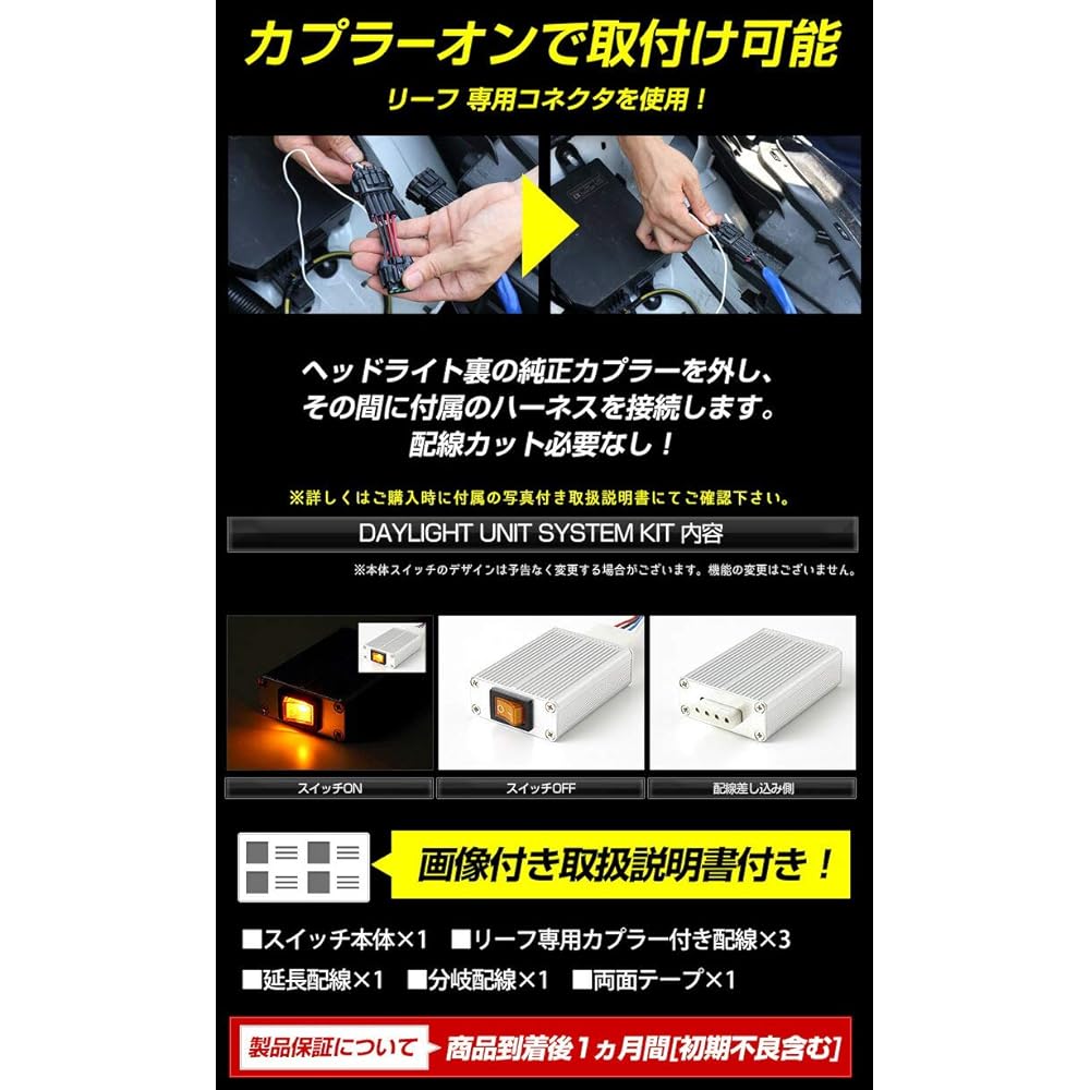 ★Special for Nissan Leaf★Daylight kit★Lighting up the daytime lamp increases the visibility of your vehicle to oncoming cars and pedestrians, improving safety! ◆Compatible models Compatible: Leaf October 2017 ~ G grade X Vehicles equipped with LED headlights ◆Instruction manual with images included! This kit is mainly for using genuine position lamps such as position lamps as daylights during the day. If you turn on the DAYLIGHT UNIT SYSTEM KIT switch, the front position lights up as soon as the engine starts! When not using it as a daylight, you can turn it off. By installing the DAYLIGHT UNIT SYSTEM KIT, only the genuine front position lamp can be lit as a daylight during the day. ◆About the warranty: 1 month after receiving the product (including 1 week of initial defects) Installation must be done by a professional or dealer. If you install it yourself, it may not be covered by the warranty. Please note. The warranty is only for the product, and we will not be responsible for any costs such as labor costs for replacement etc. Please note that this warranty only covers natural breakdowns, and may not be covered depending on the reason for the breakdown. Initial (within 7 days after arrival) shipping charges for exchanges other than defects will be borne by the customer.