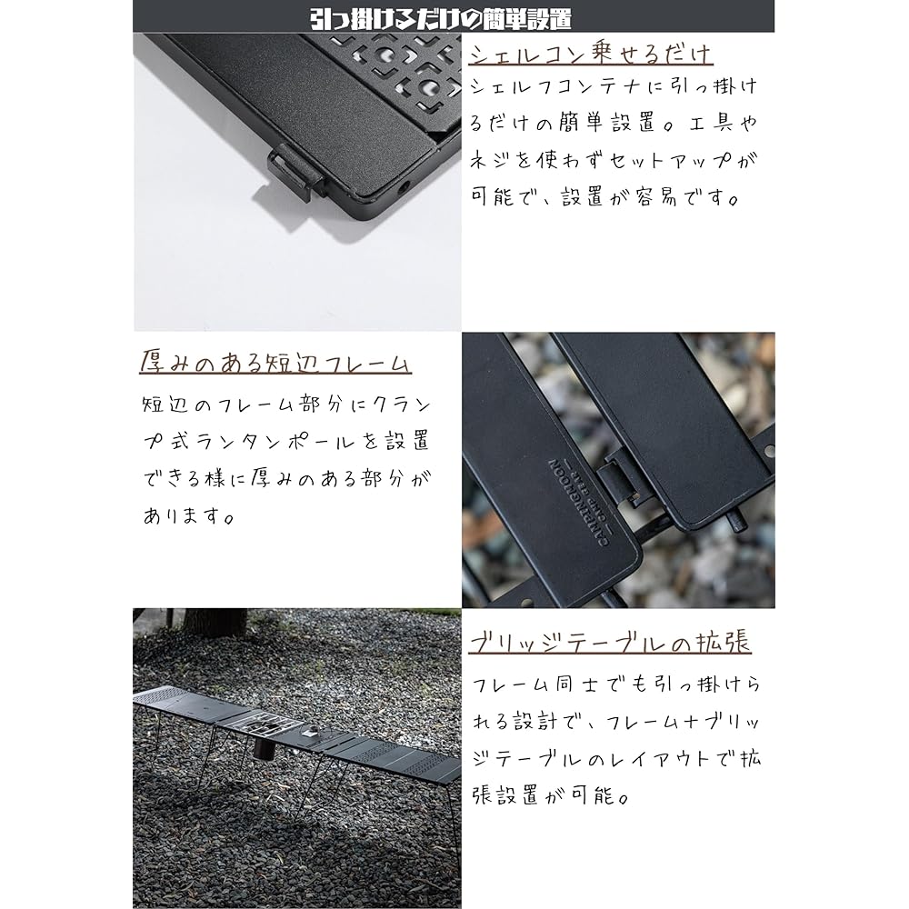 Material: Steel (black powder coating) Size: Outer circumference: approx. 620 x 370 x 15 (height) mm, Inner circumference: approx. 506 x 364 x 15 (height) mm. Applications: Shelf containers and field racks. A table frame that can be used by connecting it to the table. The frame is made of iron and can fit 2 units of IGT. A flat burner or other IGT unit can be set on the bridge top frame. Space for 2 IGT units. The board does not stick. *It is a painted item. If it is hit against a hard object or rubbed, it will peel or scratch.