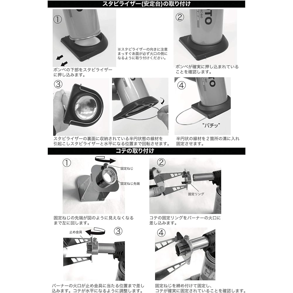 Product contents: Iron, stabilizer (compatible with household screw-in CB cans only) *Caution: Do not tighten the fixing screws too hard. Features: The heated iron part By applying heat, you can heat up more instantaneously than with direct flame. You can also brown the mousse. 3mm thick iron. High heat storage properties make it convenient for continuous work.