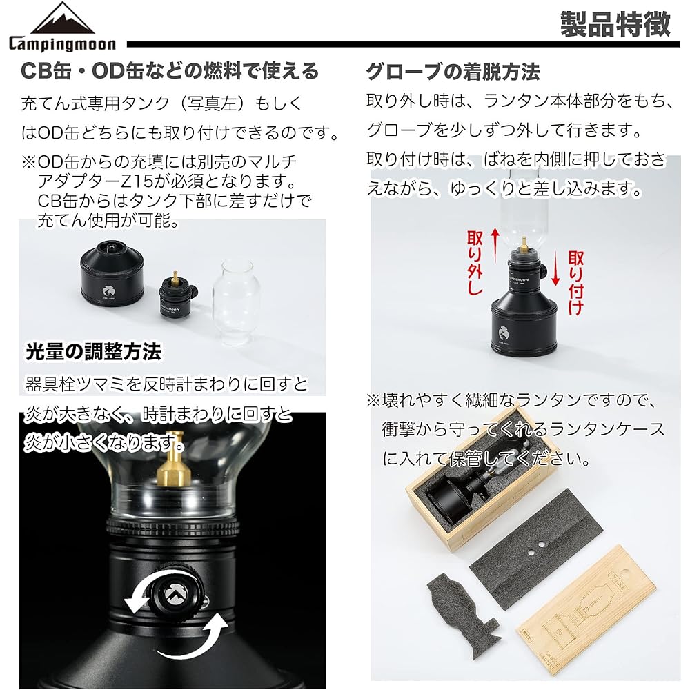 CAMPING MOON Gas Candle Lantern Gas Lantern Filling Tank with Wooden Lantern Case T-1C28