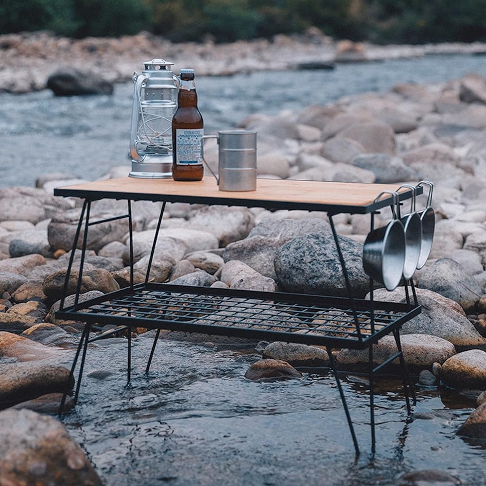 CAMPING MOON Field Ground Rack Rack Folding Rack Made of Black Plated Steel with Storage Bag Main Unit T-230 3 Pieces/Bamboo Top Plate Full Set T-230-3TP