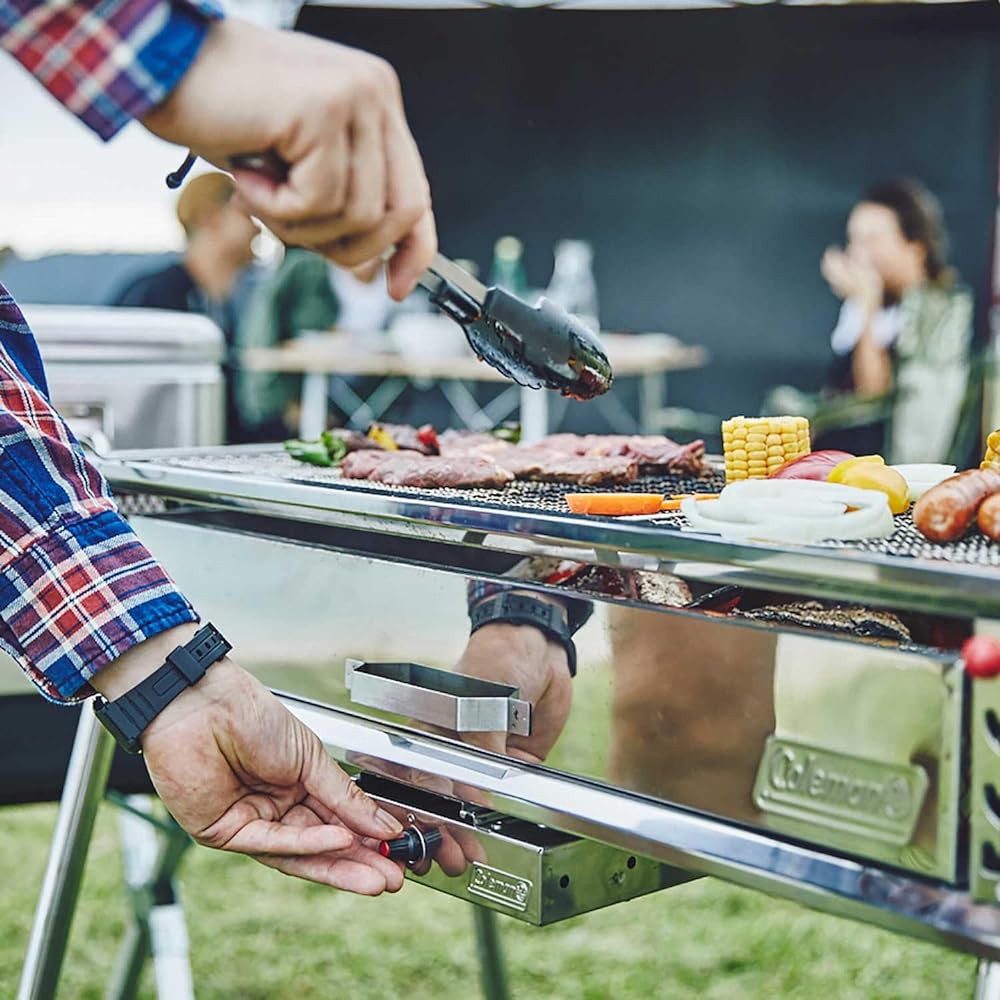 Detachable fan The height of the grill can be adjusted to 4 levels, allowing you to adjust the firepower to your preference from approx. 3cm to 10cm higher Stainless steel body Mesh body with good ventilation and high combustion efficiency Iron plate included