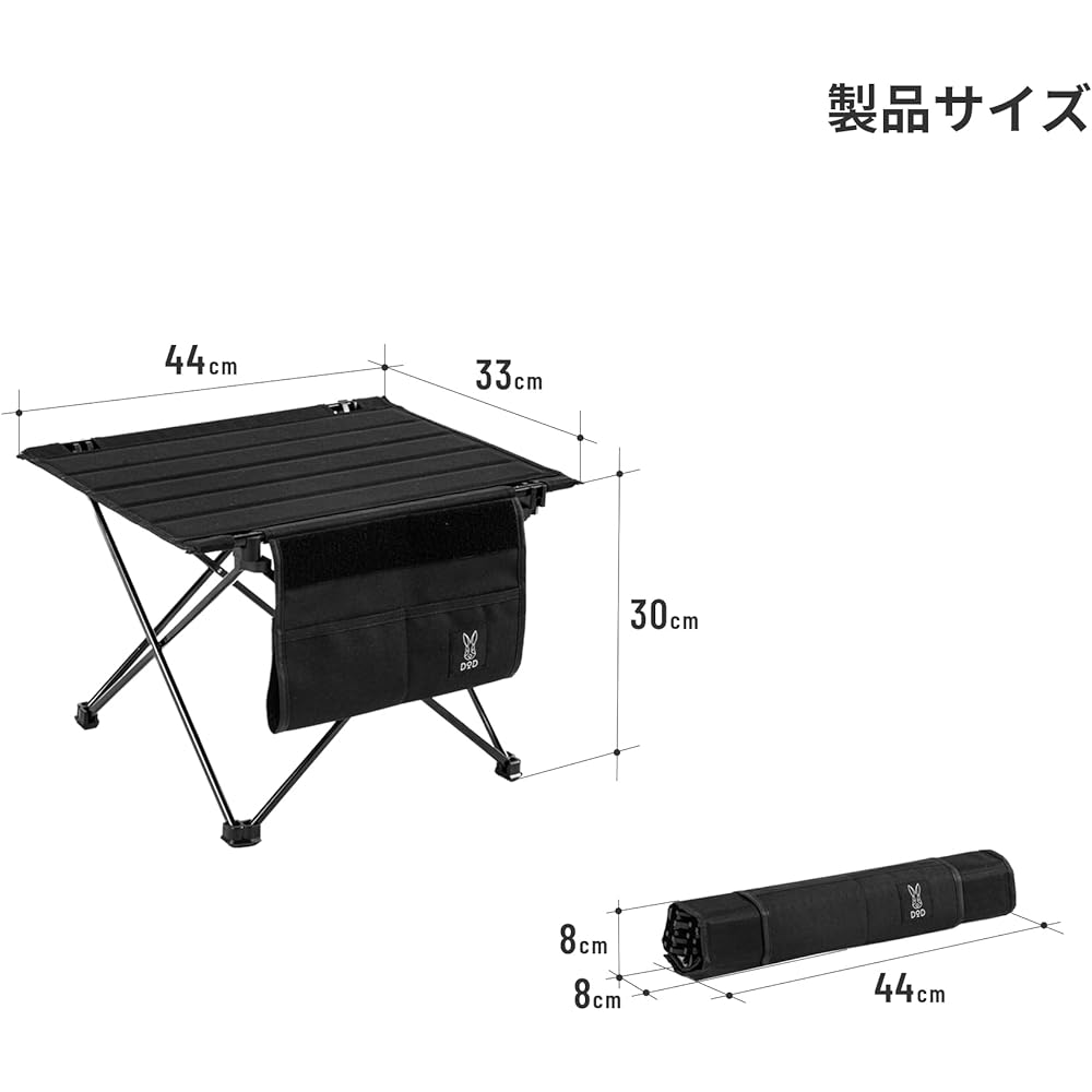 Size (approx.) W44 x D33 x H30cm Storage size: (approx.) W44 x D8 x H8cm Total weight: (approx.) 880g Materials: Frame, table top: Aluminum alloy Table top fabric: 600D polyester (flame retardant) Processing) Static load capacity: 30kg
