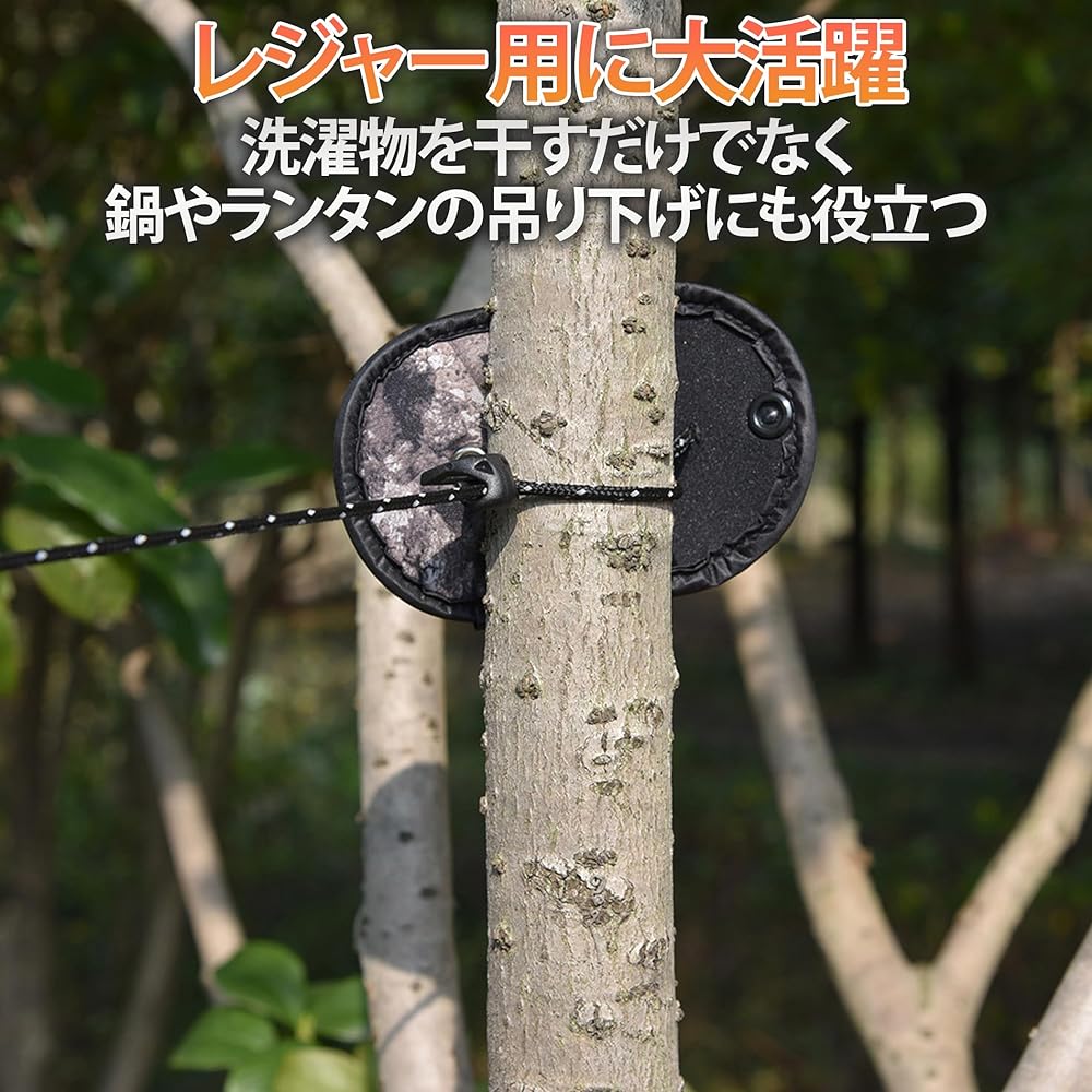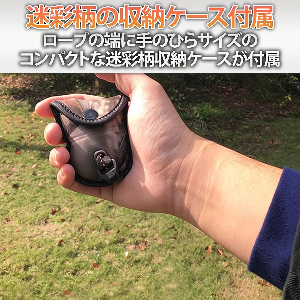 Convenient 2-piece outdoor laundry rope set: A 2-piece laundry rope set with excellent elasticity and durability that is useful when you want to hang laundry and tools outdoors to store or dry them. Made of high strength polyester, it won't break easily and can be used for a long time. Great for camping and leisure: A useful laundry rope that is popular for camping, outdoor activities, and leisure, is not only useful for hanging laundry to dry, but also for hanging pots and lanterns. It can also be used as a place to store kitchen tools. Approximately 3.2m long and comes with a camouflage pattern storage case: This laundry rope has a total length of approximately 3.2m and can be fixed to a pole or tree for use in a wide range of situations. A compact palm-sized camouflage storage case is included at the end of the rope, making it easy to wrap the rope without tying it. Specially designed to be durable and prevent laundry from flying off: Useful as a laundry rope to dry wet items, or as a rope for hanging items that you don't want to leave directly on the ground when camping. The special design of double rope and beads gives it a sense of stability and you don't have to worry about it being blown away by the wind. Set contents: 2-piece set Size: Approx. 3.2m Weight: Approx. 33g Material: Polyester Color: Black, camouflage *Color appearance may vary slightly depending on the monitor environment.