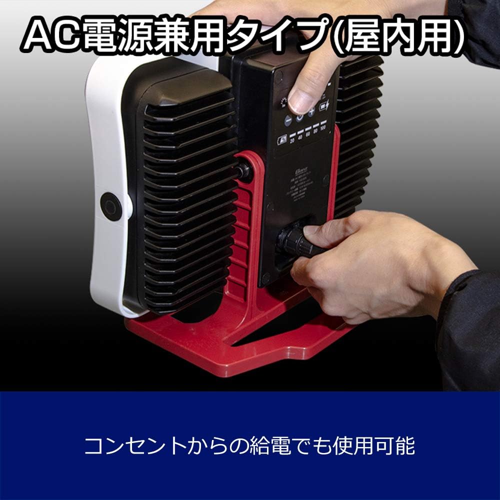 Two light source units can independently adjust the illumination angle Can be used with built-in rechargeable batteries or powered from an outlet Dust-proof, splash-proof (IP64 compliant) & 1m drop resistant [COB LED] A large number of LED chips are densely packed on the base Directly mounted light source. It is less likely to create multiple shadows than a multi-light type, and has a wider irradiation range. [Brightness lasts until just before the battery runs out] IC control maintains the initial brightness until the end. [Temperature sensor] Temperature sensor When ON, it senses the body temperature and automatically lowers the light intensity to prevent the body from becoming too hot. [Battery indicator] Displays the remaining battery level according to the lighting mode used. [Charging indicator] Displays the charging status. [Low Battery Indicator] The main LED will flash to notify you before the battery runs out. AC rechargeable. A back push switch that can also be used when powered from an outlet. Can also be used with a carrying handle. 180 degree movable stand. If you use the separately sold accessories, you can use the back push switch even further.