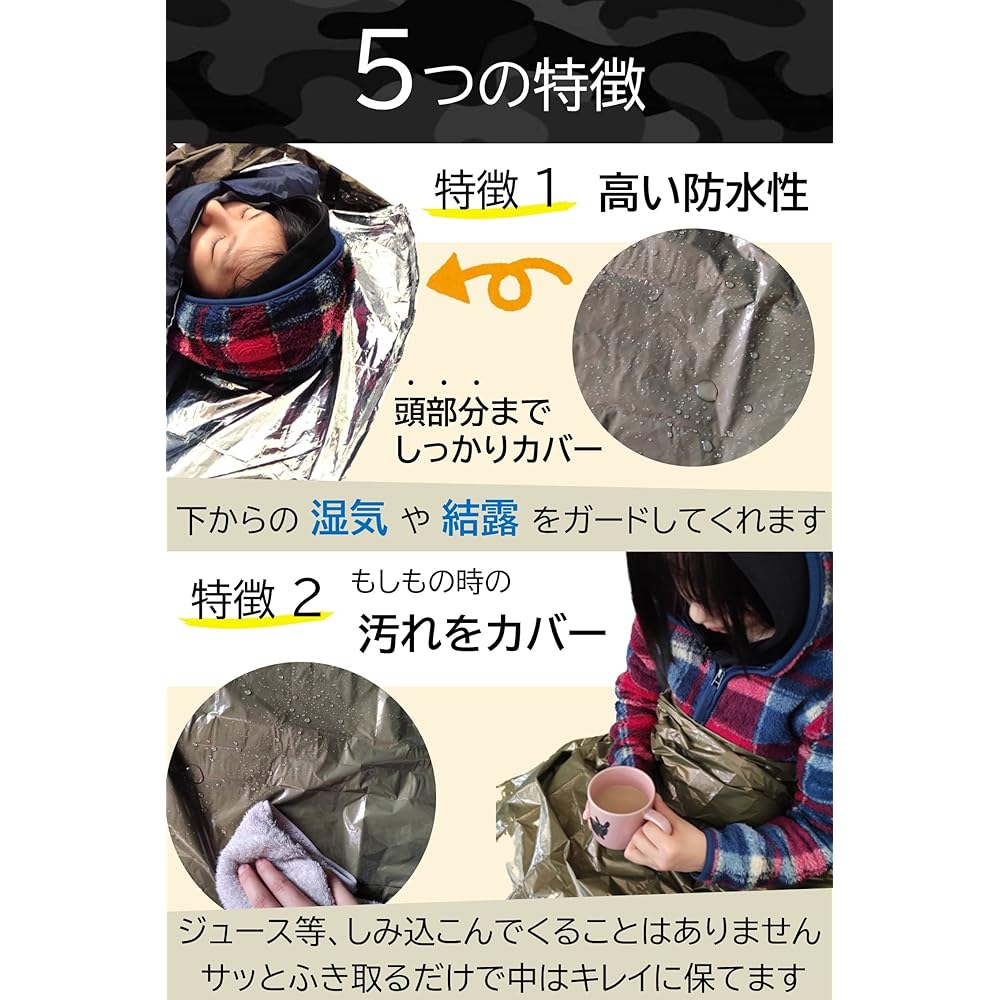 ✅ [Excellent heat retention, waterproof, and windproof ~ Protects not only you but also your precious sleeping bag ~] By using an additional sleeping bag cover on top of your sleeping bag, you can avoid the carelessness that often occurs when camping in winter. It protects your precious sleeping bag and sleeping bag from stains caused by coffee, juice, and other spills, as well as from getting wet due to moisture and condensation inside the tent. Of course, it improves heat retention, so it can solve problems such as being unable to sleep because it is cold inside the tent at night. It also has a large degree of freedom, so it covers the entire head. ✅ [Large usage and neat and compact storage] As it is touted as an easy sleeping bag cover, it is lighter and can be stored very compactly compared to other sleeping bag covers or sleeping bag covers. When unfolded, it becomes large enough to fit a sleeping bag, so you can use it comfortably. It takes some skill to store it in a small size, but once you get used to it, you can easily clean it up. We also recommend folding it quickly, placing it between sleeping bags, and putting it in a sleeping bag together. ✅ [If you're prepared, you won't have to worry - Great for natural disaster prevention] This material is also used for films and wraps, so it not only has high heat retention capacity, but is also waterproof and windproof. In emergencies such as mountain climbing, hiking, or disasters, this sleeping bag cover can be used alone as a survival sheet, emergency sheet, or aluminum blanket to prevent your body temperature from dropping. Just in case, you can always keep a portable sleeping bag in your backpack or car. ✅ [Good cost performance] While maintaining the necessary functions, the cost is significantly lower than sleeping bag covers from other manufacturers. We have set the price to make it easy for those who have never used a Sherafu cover to try it out. Please take this opportunity to purchase it as your first Sherafu cover.