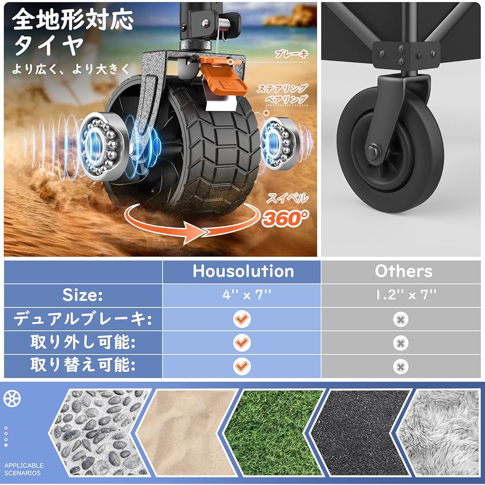 Carry Wagon [With Brake] Housolution Large Capacity 260L Load Capacity 200kg Outdoor Wagon Foldable Camping Cart One-Touch Convergence Type Free Standing Storage Quiet Camping/Sand Beach/Fishing/Moving/Shopping/Trash Out Storage Cover Included