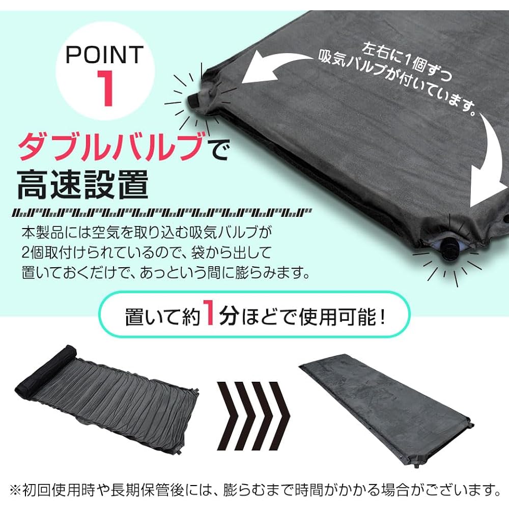 ●Air + Urethane! Our mats are not just air or urethane; they are air + urethane. The soft, moderate elasticity of urethane foam and resilient air prevent the mat from sinking too much. It has a well-balanced matte design that firmly supports your body. ●Easy installation & easy storage Equipped with 2 valves, making it easy to put air in and out! To install, just open the valve and it will automatically inflate. To clean up, just open the valve, press down to let the air escape from the end, roll it up, secure it with a storage band, and put it in a bag! ●You can choose from your favorite 4 colors for the suede-like fabric on the front! This fabric is smooth but feels nice to the touch. The back side has a non-slip finish to prevent it from slipping while sleeping. ●Connectable design There are buttons on the side of the mat, so you can connect the mattresses together. It is convenient when you want to use it spaciously, or when placing mats side by side in a car or tent so that they do not shift. ●Various usage scenarios Great for use as a leisure item or disaster prevention item, such as sleeping in the car, outdoors, and during disasters. ``Sleeping in the car'' while out on a trip or night fishing. Supporting outings regardless of departure time. What's more, if you sleep in your car, you can save on accommodation costs, and if you use a mat, you can increase the comfort of sleeping in your car! Even when you're outdoors, you can set it up inside a tent for camping, swimming at the beach, picnicking, etc. to make it more comfortable to sit on! It also supports the life of ``sleeping in your car'' at evacuation centers and evacuation destinations during ``disaster prevention''. ●6 colors to choose from! You can choose from 4 colors: black/brown/khaki/gray. ●With repair sticker! When using it inside a car or a tent, you may run into problems such as small holes opening due to scratches. In such cases, it comes with a sticker that can be easily repaired, so if it is a small hole, you can repair it and continue using it. [Product contents] - Mat body - Storage band x 2 - Storage bag - 2 repair stickers - Instruction manual