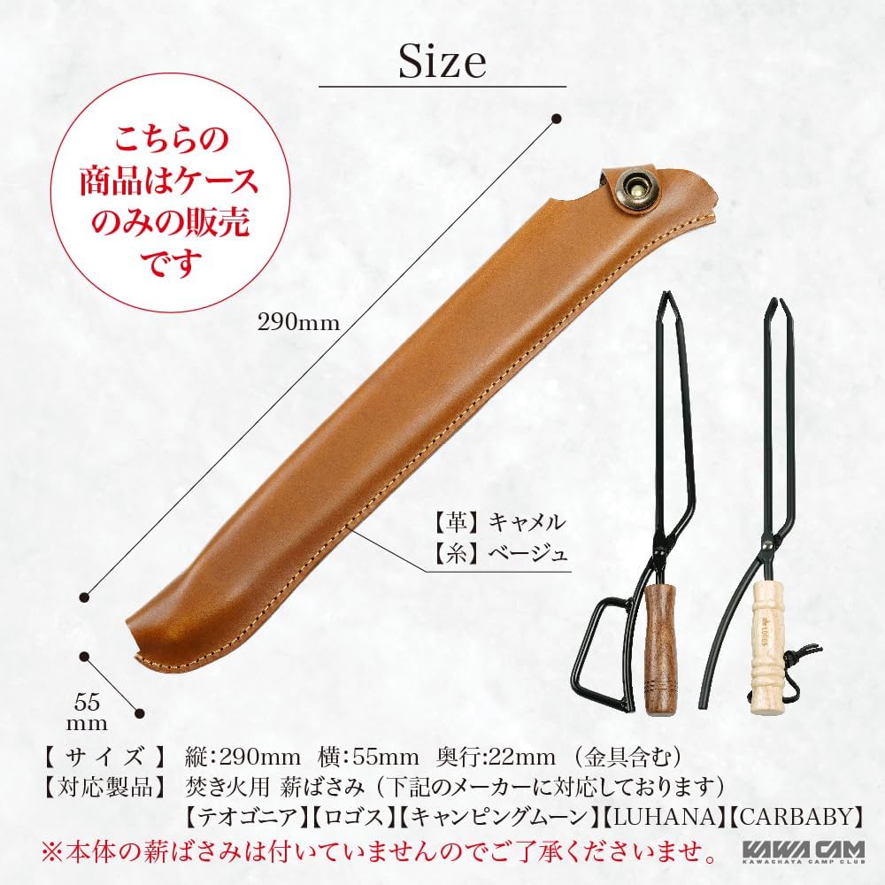 Leather Chaya Theogonia Logos Camping Moon LUHANA CARBABY Firewood Shears Case Camping Equipment Tongs Genuine Leather Protective Cover Leather Fire Shears Charcoal Shears Cowhide Barbecue Made in Japan (Camel)