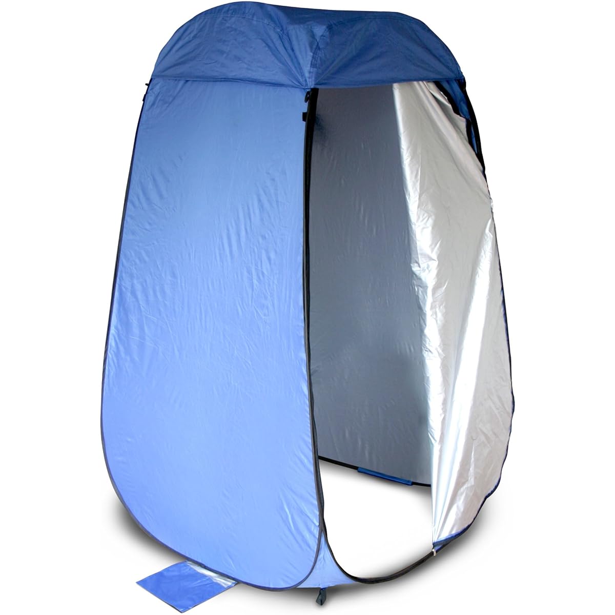 It is a small tent that is easy to assemble and store, and comes with a ceiling cover to ensure privacy, making it perfect for camping, outdoors, or as a changing room in the event of a disaster.If you use it in combination with a commercially available portable toilet, it becomes a simple toilet. Comes with a strap to support you so that it won't be blown away by the wind when you're adding it