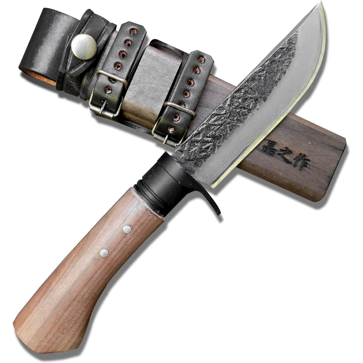 Total length/Blade length/Blade width/Thickness: 26cm/12/3.2/6 Weight/Steel/Blade shape: 110g/285g/Damascus 15 layer blue 2/Double-edged Handle/Sheath/Ring: Oak (oil stain) / Oak (oil stain) leather band / Black brim ring - Carrying this product without a valid reason is prohibited by law.・If you are under 18 years of age, please do not purchase this product.