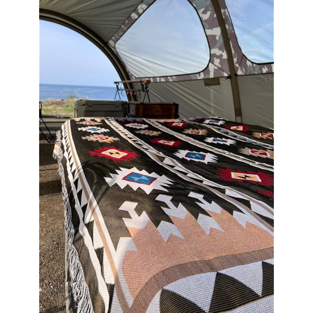 Many campers use it as a tablecloth for picnics, sleeping in the car, traveling, van life, campers, camping, and glamping. By placing antique camping equipment, you will feel like a Native American! The vibrant Moroccan pattern is woven in a strong and bold manner. Graphic designs that incorporate advanced colors can be used in a variety of situations, including modern ones. This throw blanket is perfect for watching TV on the couch or relaxing on the couch or bed. It is perfect for both indoor and outdoor use. Please use it as a bed cover.