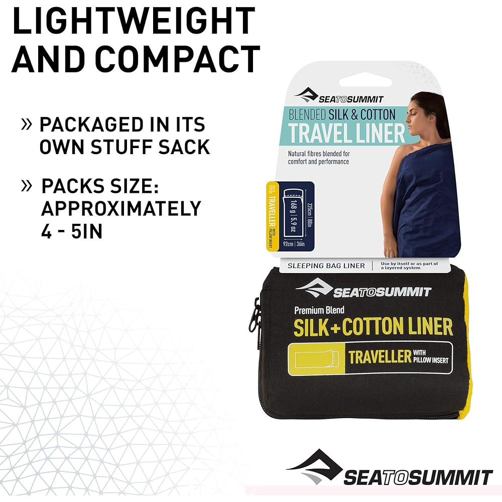 Sea and Summit Premium Blend Silk/Cotton Mummy Travel Liner with Hood
