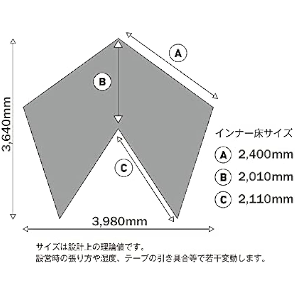 Circus exclusive option Mesh inner tent & ground sheet ■Size (approx.): Inner tent/398 x 364 x (H) 280cm ■Weight (approx.): Inner tent/3.1kg Ground sheet/1.04kg ■Material: Inner tent Panel/polyester mesh, inner tent floor/150D polyester (water repellent/PU processing), ground sheet/150D polyester (water repellent/PU processing) ■Water pressure resistance: 2000mm *Inner tent floor part/ground sheet ■Included Product: Storage bag ■Made in Vietnam