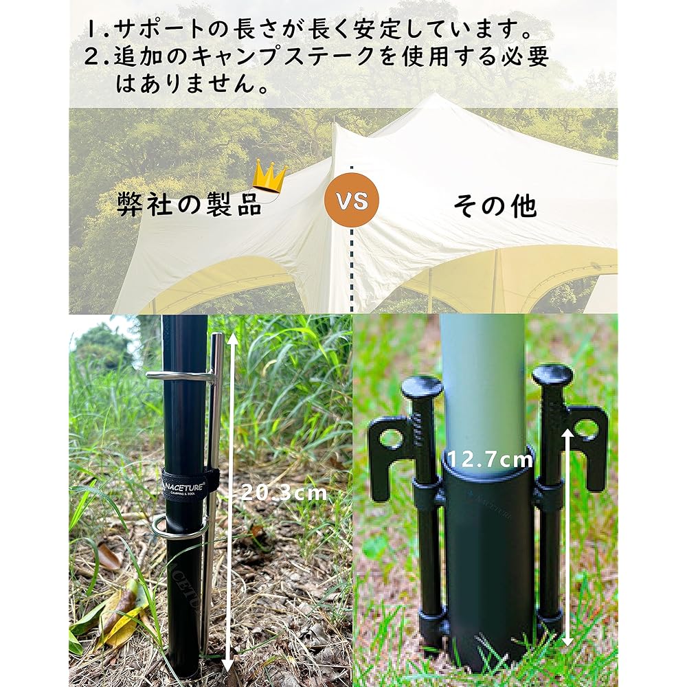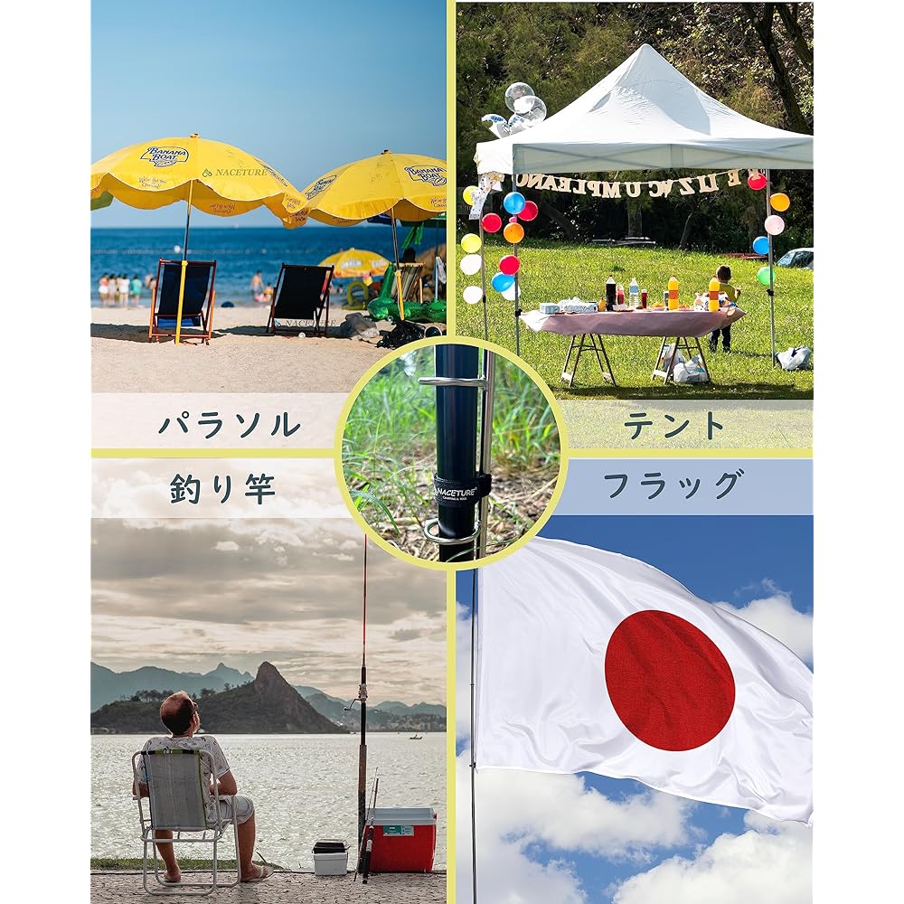 ✅Installation in seconds - Easy to set up, lightweight for easy portability, no tools required, making installation quick and easy. Secure the tent pole in the sand, dirt or grass and place the tent pole between the two rings. Metal big event anchors can securely set up tent poles in less than 1 minute. ✅ Make your tent poles safe – People who like to go camping should choose anchors properly to ensure the strength of their tent poles. The tent poles will have better stability even in strong winds after being placed on the ground. Definitely an accessory worth adding to your camping gear. ✅One size fits all - Our tent pole anchors fit all tent poles up to 40mm. Ideal for grass, soil, ground, garden and other outdoor activities, has a wide range of uses, suitable for fixing tent poles, beach umbrellas, artificial Christmas trees, flagpoles, etc. ✅Durable - Made of high quality 304 stainless steel, this parasol stand increases the stability of the parasol and will not rust even when exposed to sand or salt water, making it suitable for various seasons on the beach Tougher than plastic anchors designed to withstand. ✅ IDEAL BEACH EQUIPMENT - When placed on the ground with this parasol holder stand, your parasol is much less likely to fall over or blow away. And the best part is that you can now buy two for the price of one. It also comes with a convenient carrying bag so you don't have to worry about carrying sand with you to your car after a long day at the beach.