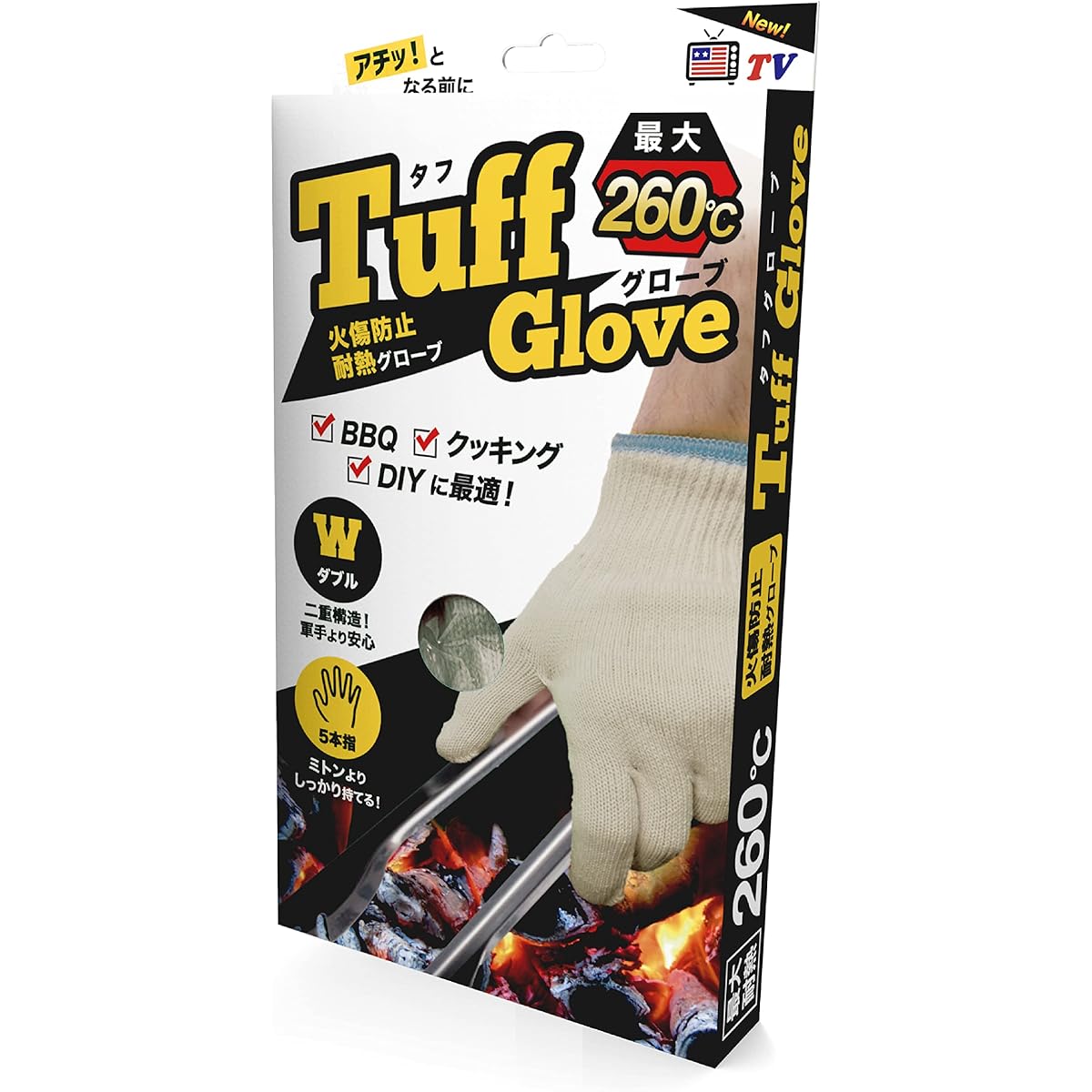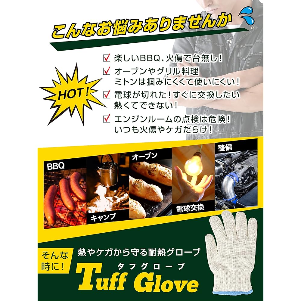 Tough Gloves Heat Resistant Gloves Up to 260℃ Free Size 1 Pair 5 Fingers Burn Prevention Heat Resistant Gloves Outdoor BBQ Charcoal Maker Camping DIY High Temperature Work Pot Holder Mittens (Beige)