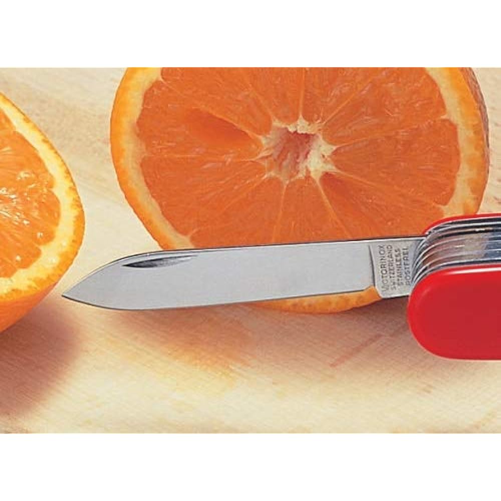 Blade material: Stainless steel Color: Silver Country of origin: Switzerland Number of functions: 9: Large blade (large blade), reamer (drilling), can cutter, flathead screwdriver (small), screwdriver, flathead screwdriver (large), Wire stripper, scissors, key ring Brand: VICTORINOX