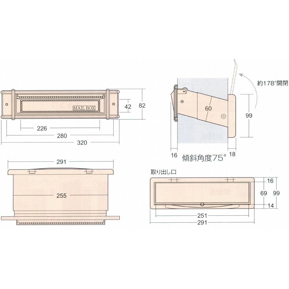 Aiwa Mail Chute for Large Walls with Inner Lid No.24 Brown