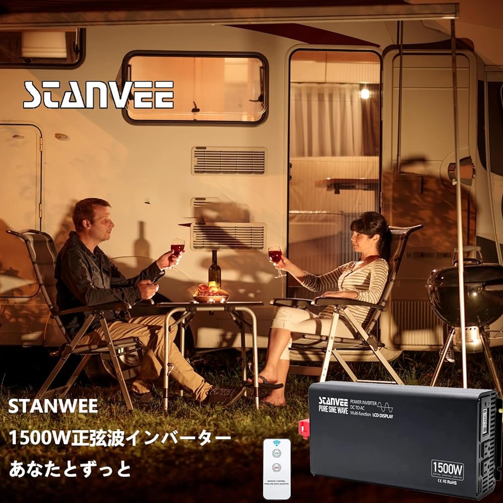 STANVEE Inverter 12V 100V 1500W Sine Wave 60Hz Remote Control Included AC Outlet x 2 Cooling Fan x 2 Car Inverter Disaster Prevention Disaster Prevention Supplies Camping Outdoor