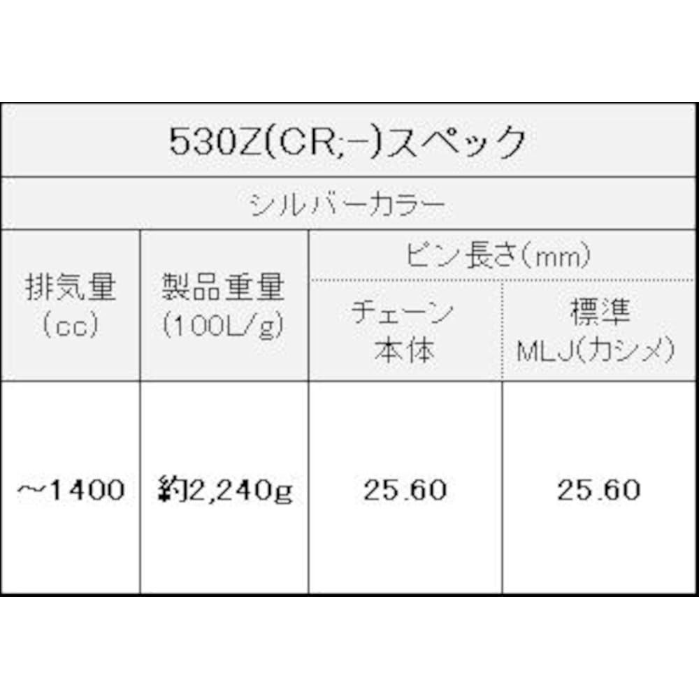 Chain size: 530 Number of links [Number of links]: 110L Seal shape [with/without seal]: QX2 Ring color [color]: Silver Compatibility: 250cc-1400cc Type: Z Notes: MLJ (caulking joint)