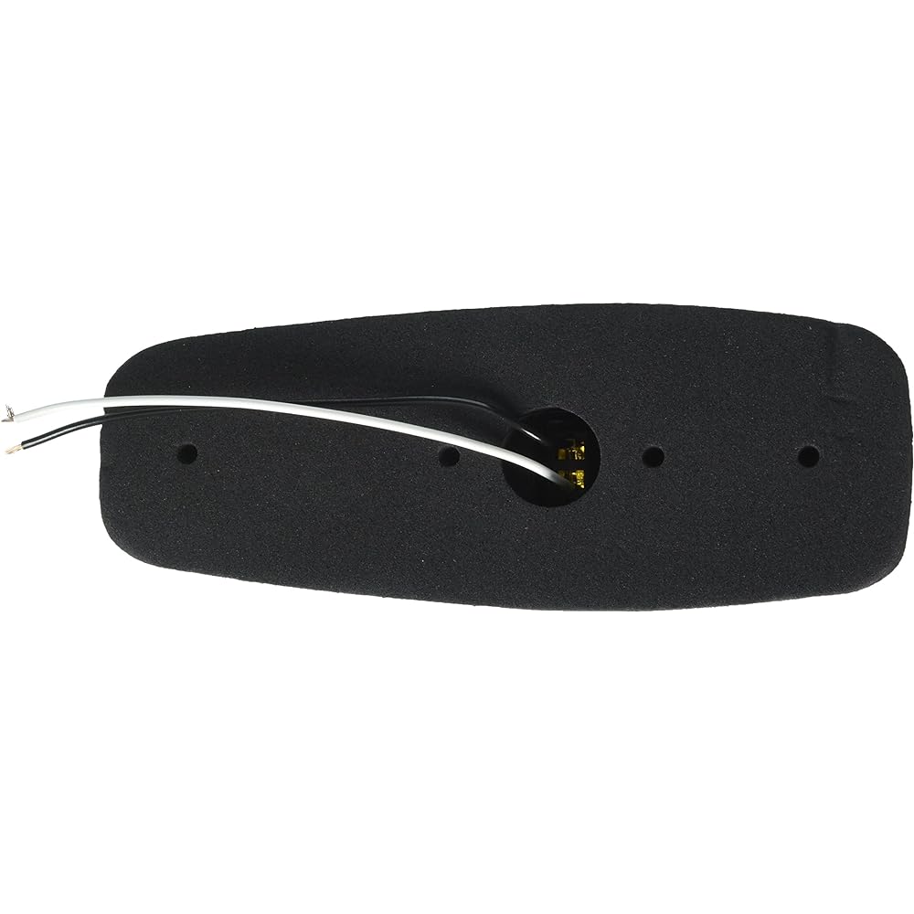 Cab marker lamp, small aerodynamic, 7-9/16 inches long, 2-5/8 inches wide, 2-1/8 inches deep, yellow, odd shape, lamp type incandescent, 12 volt bulb, material DURAMOLD/ Polycarbonate, rated current .35A, termination type hardwired, mounting type surface, use '