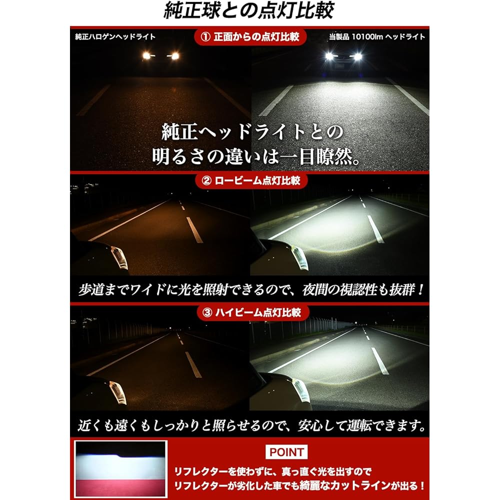 H4 LED Projector Headlight, Actual Measured Value, 10,100 Lm, Hi Lo Switching, LED Prismatic Cut Line, Fanless, White, High Beam, Low Beam, Vehicle Inspection Compatible, Explosive Light, H4 Headlight