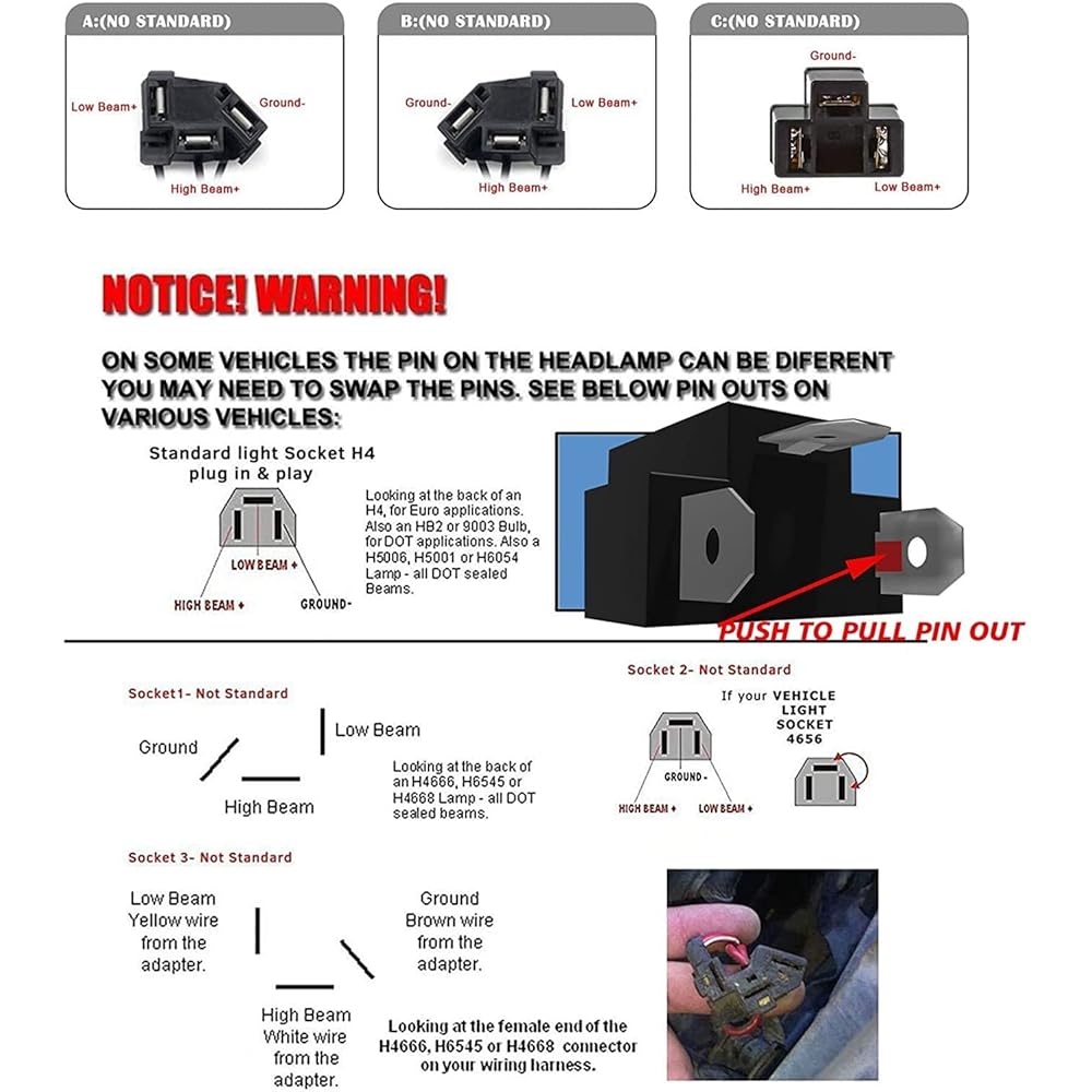 LEGAL AND SAFE - 5x7 LED headlights are designed to upgrade any closed beam truck headlights to LED lights. Provides brighter, whiter light and no need to deal with burnt out headlights to ensure driver safety (high beam 5900 LM, low beam 2800 LM). This 5x7 headlight provides low beam and high beam LED lighting technology, making your driving process safer. Wide application - Please make sure this part fits your vehicle before purchasing. Toyota and other vehicles may require the headlight plug pins to be moved to different positions. An H4 to 3 pin package adapter solves this problem. 1986-1995 YJ Wrangler, 1984-2001 XJ Cherokee, 1986-1992 MJ Comanche, Kenworth trucks, fire trucks, off-road semi-trucks, Jeeps, Isuzu construction vehicles: excavators, bulldozers, cranes, mining trucks, etc. Wide lighting range - 7x6 headlight e250 headlight / 6054 LED headlight Advanced LED chips emit bright white light for clear visibility. Specially designed lamp cup provides a wide illumination range and allows you to clearly see left and right. More complete performance - H6054 LED headlight is IP68 waterproof rate, very bright for 2 hours in water, dustproof, effective dustproof. Stainless steel mounting bracket protects from rust and corrosion. Rapid cooling aluminum alloy fins and high quality thermal silica gel can effectively extend the service life of the strip over 30,000 hours. SATISFACTION GUARANTEED – Please check the size, type and shape of the photo you are purchasing to ensure it is what you need. -