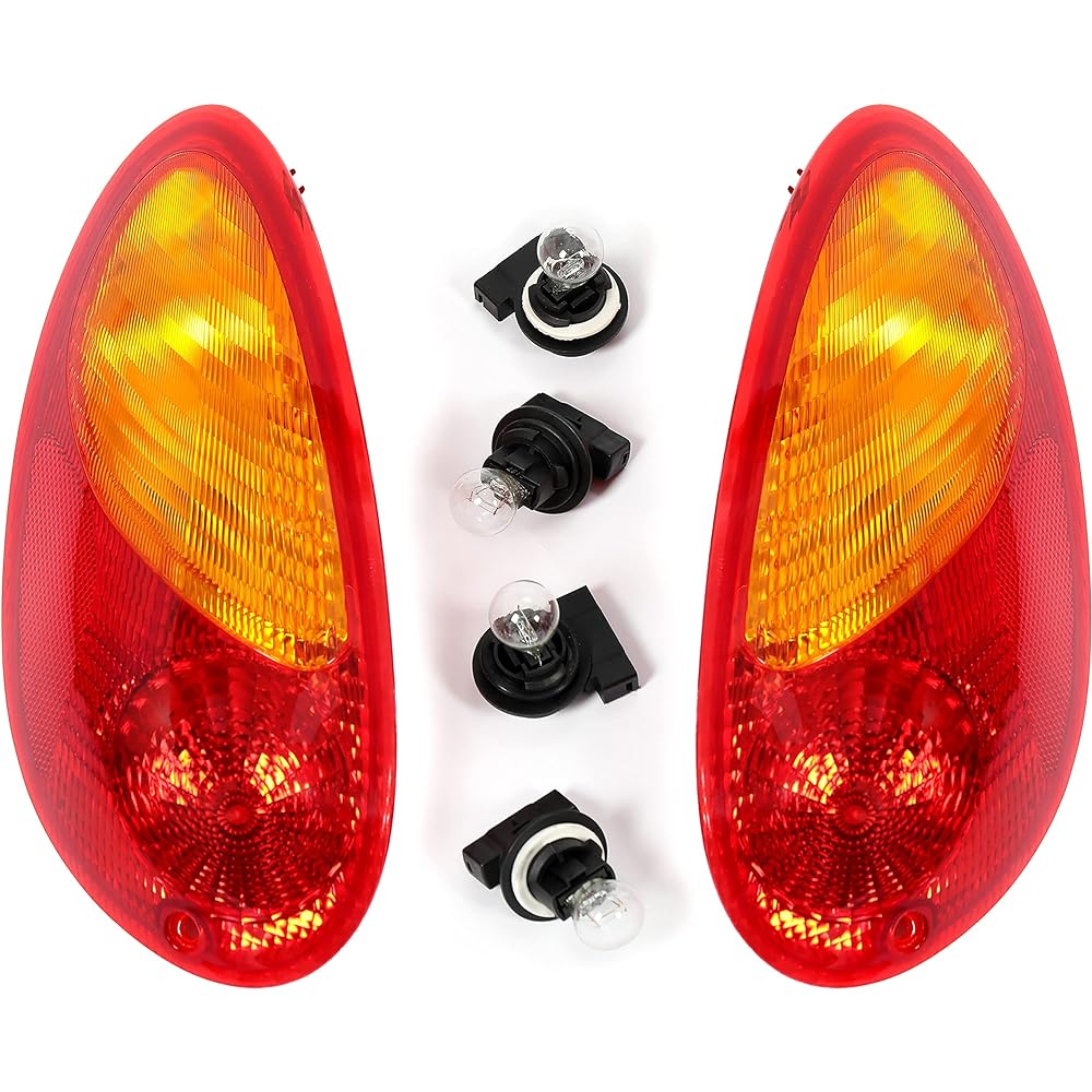 HECASA Halogen Tail Light 2001-2005 Chrysler PT Cruiser Tail Light Tail Lamp Brake Lamp Pair LH&RH 5288743AG 5288742AG with Replacement Bulb (Driver & Passenger Side) Compatible with: Halogen Tail Light Compatible with 2001-2005 Chrysler PT Cruiser. Replacement for 5288743AG 5288742AG. Please check the year and model of your vehicle before purchasing. Durable Material: Color: Amber + Red Lens. Precision designed to perfectly fit your vehicle. High quality plastic construction, waterproof and not easy to wear. Ensure maximum performance and long life of your tail lights. Safer Driving: Taillights allow you to see your car from a distance. Helps drivers behind you know where you are at night or in bad weather. Significantly improve reaction speed of other drivers. Package Contents: Instructions and hardware are not included. Only 1 pair of tail lights with bulbs (driver & passenger side). Installation: Easy to install. Just use screws. No modification required. Professional installation is highly recommended.