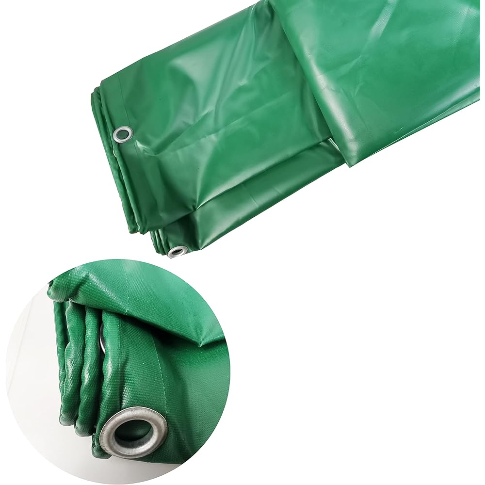 Specifications Color: Green Size: 3.6m * 2.4m Thickness: 0.5mm Number of holes: 22 holes (approximately 50mm spacing) 1 piece of rope Material: PVC canvas waterproof flame retardant PVC with excellent performance Excellent waterproof performance, firmly protects against rainwater It has excellent flame retardant properties, so you don't have to worry about contamination from open flames in a short time. Four Corners Reinforced Sturdy and durable tarpaulin is wrapped with rope on all sides, the eyelets are made of alloy material and not deformed, the four corners are reinforced with black hard triangular plastic shell, which is strong and wear-resistant. .