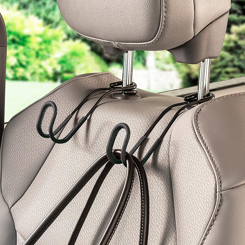 Storing and organizing your car, SUV, or truck seats - Patented heavy duty metal car hanger. Comes with a PU leather cover to add hanging storage to the front seat, back seat or trunk of any vehicle. Prevents Grocery Bags and Purses from Tipping and Spills - No more loose items rolling around on your car seats or floor. High Road car headrest hooks are a must-have car accessory. QUICK AND EASY INSTALLATION - Simply open the loop on the back of the car hook and wrap it around the metal headrest post. Each hook has a wide cushion back loop to fit any size headrest post - no slipping or noisy clanking. Holds a lot and won't snag or snag on fabric - each car seat hanger can hold up to 40 lbs. Large front loop design holds thick handbag handles and grocery bags without sharp edges catching on fabric. DURABLE CONSTRUCTION, HIGH QUALITY MATERIALS - Solid metal and synthetic leather with powder coated finish is not made from animal skin. High Road has been designing car storage solutions for over 30 years from our offices in Maine.