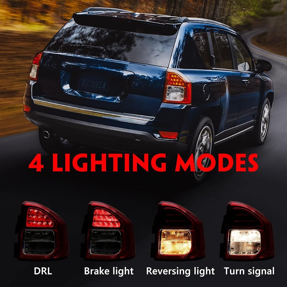 [Features] Huray high performance tail lights provide bright light. Made of high quality materials. Running lights and brake lights are LED bulbs. The reverse lights and turn signals are halogen bulbs. [Easy to install] Plug and play design. No wiring required. Professional installation is highly recommended. **Note: Before making your selection, please read the detailed instructions for the steps shown in the picture to avoid affecting the installation below. [OE Replacement] OE replacement, perfect fit for your compass. Reference Part Number: 5182543AC [Fit] Compatible with Jeep Compass 2011 2012 2013. Right side (passenger seat). [Purchase with confidence] Huray insists on giving back to customers with high quality service. 365 days warranty. (1) Does not fit the compass = please return it. (2) If you have a problem = contact us for a solution; (3) If there is a defect = get a new replacement; (4) If you have a problem with our lights, please contact us.