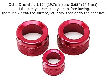 Compatible with 2015-2017 BMW F25 X3, 2015-2018 BMW F26 X4. Transform your interior control panel with superior design and sturdy grip. 3 Pieces Three Red AC Climate Control Ring/Radio Volume Knob Cover Made of durable high quality anodized aluminum Ribbed grooves transform your vehicle's plain interior and add a unique pop of color. Includes double-sided tape to add grip to the dial knob control ring cover. This product is an iJDMTOY trademark brand product. Available only at iJDMTOY.