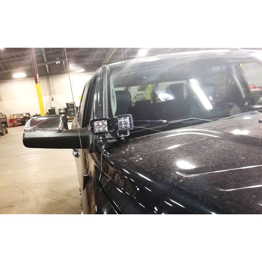 3mm thick black powder coated stainless steel plate. Instead of just one LED pod, it can support two LED pods on each side. Suitable for A-pillar, hood hinge or windshield off-road LED DRL/driving light upgrade. Universal fit for most LED light applications such as Rigid, RC, Baja, etc.