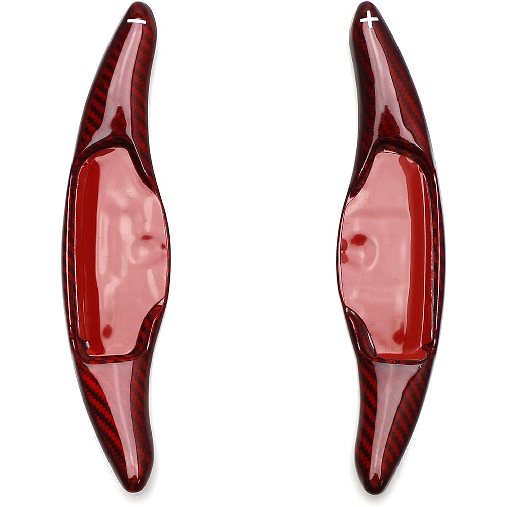iJDMTOY High Gloss Red Genuine Carbon Fiber Steering Wheel Large Paddle Shifter Extension Cover Compatible with 2018-up Kia Stinger (CK) 2 3 4 EU iJDMTOY Trademarked Brand Product.