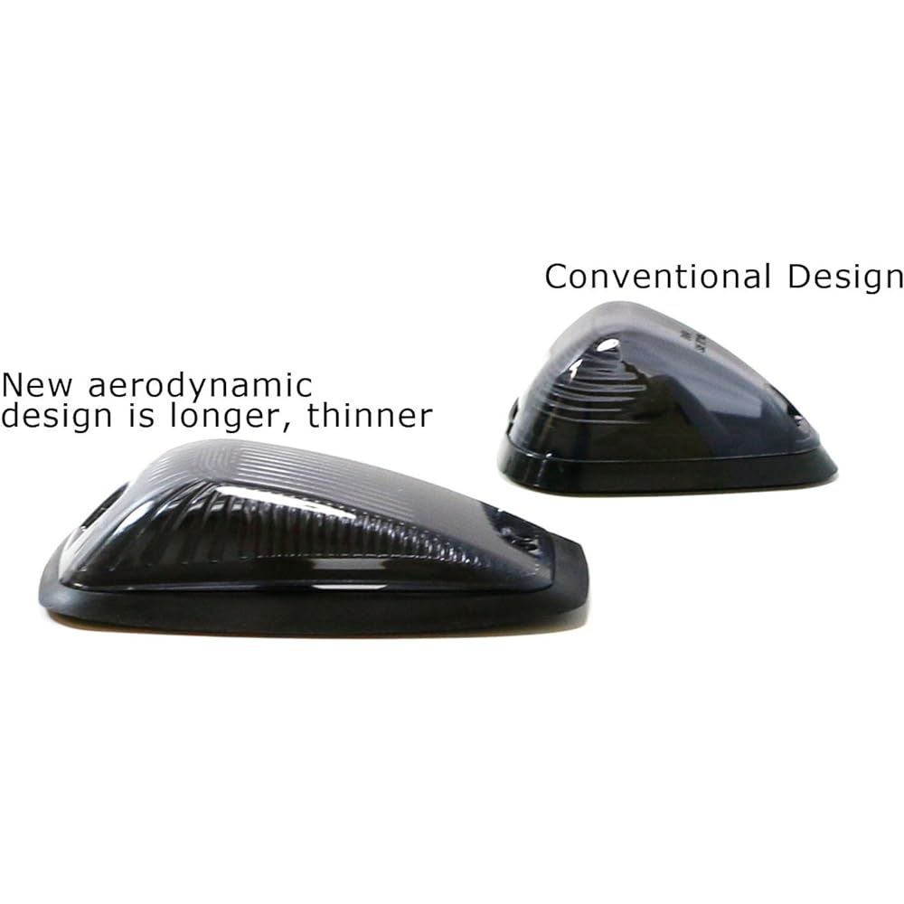 Ultra-thin aerodynamic roof cab light assembly 5pcs LED replacement bulbs, includes bulb adapter/pigtail. In its low position, it measures 3 inches wide, 5 inches long, and 1.25 inches tall, giving it a very sporty, modern look. DOT SAE compliant. Compatible with part numbers 11516638, 15599040, 15691885, 8C34-15442-CB, 8C34-15442-AD. Replacement for OEM Amber Lens Cab Roof Lamps on Trucks or New Add-On Installations on Trucks (Note: Drilling is required for new add-on installations. Additionally, cab roof lamps have a flat bottom. , if your car's roof is very curved, it may not fit properly).
