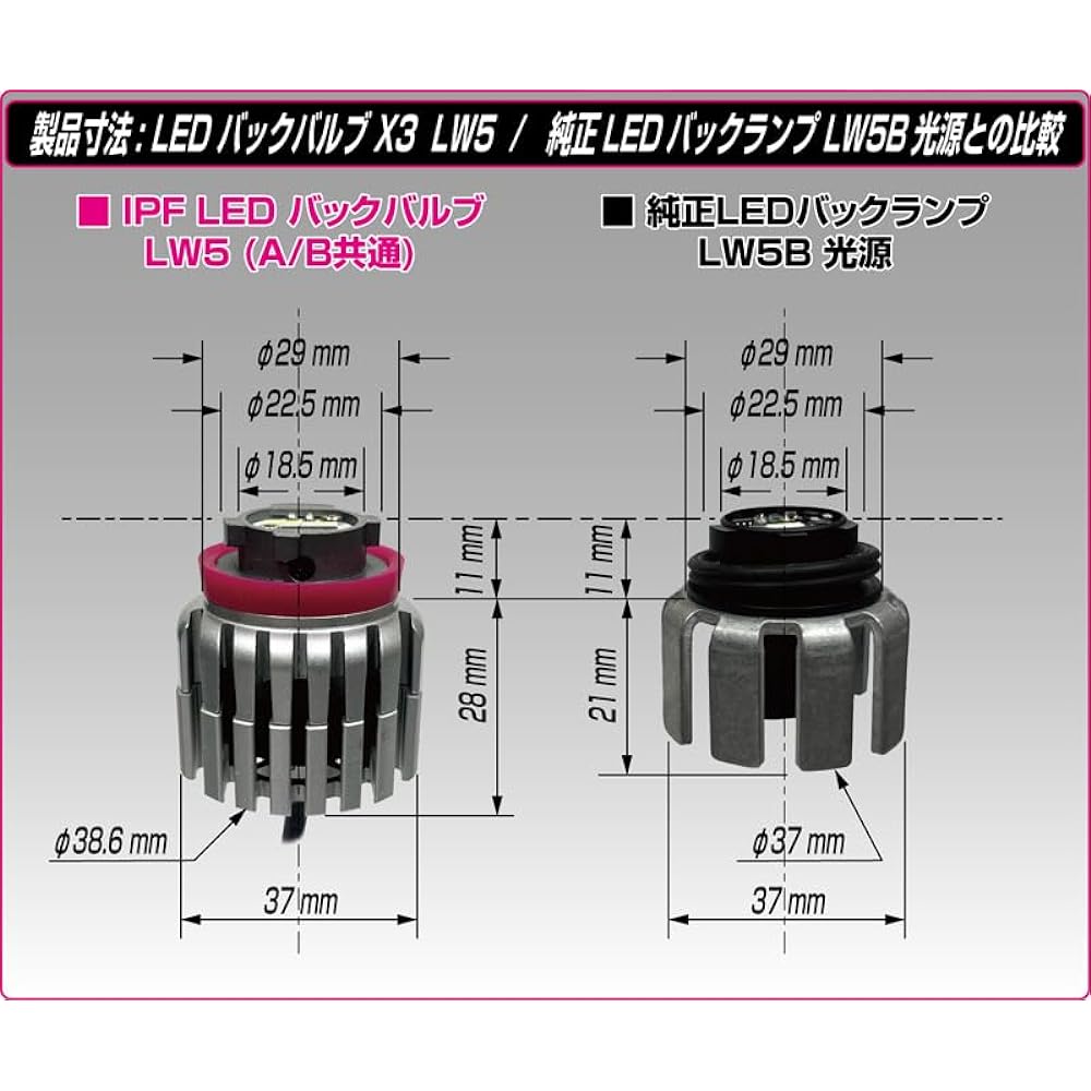 Set contents: LED bulb x 1 Specifications: LW5 type (replacement bulb for genuine LED back lamp) Compatible with LW5A/LW5B, 12v only, 6500K Brightness: 2500 lumens (genuine 400 lumens) Compatible with vehicle inspection, 3 years warranty Genuine LED The back lamp bulb is replaceable.It brightly illuminates the illuminated area with approximately 6.2 times the brightness compared to the original bulb, making it appealing to following vehicles and improving safety.Equipped with an electric cooling fan that achieves excellent luminous flux maintenance rate.