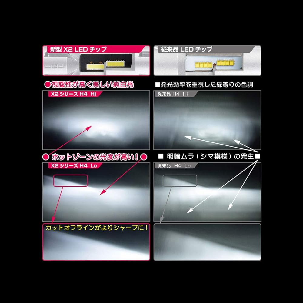 ●Equipped with a newly developed filament-type LED chip ●By making the LED light emitting surface the same shape as the filament of a halogen bulb, accurate irradiation is possible without disturbing the original light distribution ●Uniformity over the entire LED light emitting surface By emitting light, we succeeded in reducing the uneven brightness that occurs in the irradiation pattern.Dual CPS (patented) that balances light distribution and LED cooling at a high level and LACH (patented) that effectively cools LEDs. Newly developed with a large cooling fan and SEPIC driver circuit (applied), large cooling fan, and SEPIC driver circuit Compatible with hybrid vehicles and idling stop vehicles Brightness 5400 (high beam)/3800 (low beam) lumens (total value of 2 beams) What is HID? Differences: Demonstrates 100% brightness immediately after lighting ●Easy installation with all-in-one body with integrated driver circuit ●Completely reproduces the light distribution pattern of the genuine halogen bulb ●Reproduces the filament position of the genuine halogen bulb based on the latest optical design Achieves wide light distribution and brightness ● Improves brightness and visibility by reproducing not only light distribution but also bright points (hot zones) ● Eliminates glare that poses a danger to preceding and oncoming vehicles ( Scattered light) is also kept to the same level as the original lamp.Using thermal analysis, the newly developed dedicated large heat sink is equipped with a highly reliable waterproof and dustproof electric cooling fan, which powerfully cools the LED. Achieves maximum brightness and long life ●Equipped with a constant current driver circuit that provides constant and stable brightness, and maintains maximum brightness without being affected by voltage even during idling stop or when stopped ●Radio noise In addition to noise filters and long-life capacitors that suppress noise, it is equipped with a number of safety functions such as static electricity/power pulse protection, applied voltage protection, and applied current protection.●Polarity-free design allows for positive control vehicles and negative Can be used regardless of the control vehicle ●Highly durable and high quality parts are carefully selected and manufactured under thorough quality control. As a manufacturer of genuine parts, we conduct tests in accordance with the standards required by car manufacturers, and based on our product performance evaluation data, we have newly set our own harsh evaluation items such as salt mud water tests and actual vehicle durability tests. . It is durable enough to reproduce and withstand any conceivable usage environment around the world. ●12V, 24V compatible type ●Vehicle inspection compatible ●12V car: 3 years or 60,000 km, 24V car: 2 years or 100,000 km Warranty Precautions for use *For domestic cars only *This product is for headlamps only *Halogen specification This is a replacement LED bulb for your car. *It has a built-in high beam indicator lighting circuit, but in some lower model cars, if the indicator is an incandescent bulb, it may not light up. In that case, you will need to install our high beam indicator lighting circuit (product number: WA-4, ¥2,400 excluding tax) *Please check our website for compatibility information and installations that have not yet been investigated *Genuine halogen bulb and In comparison, the rear part of the bulb is large, so please check the space. *Vehicles with a cover on the back of the light body cannot be installed. *Compatibility information may differ depending on special edition vehicles, optional vehicles, grades, etc., so please check the space. *Depending on the vehicle, it may be necessary to remove the light body. *This product is compatible with vehicle inspection for irradiated light within the chromaticity range specified by the safety standard JIS D5500, but the genuine bulb Because the emitted light color is different from the original one, it may be deemed non-compliant with the vehicle inspection, so in that case, please return to the original bulb. *Commercial vehicles such as taxis are not covered by the warranty. *Using this product may cause On some vehicles, the warning light may turn on or flash. *Using this product may cause noise to be heard on radios, etc. *The vehicle devices listed below are designed to be used in combination with genuine valves, so installing this product may cause them to malfunction. [Autonomous driving, collision damage mitigation braking (automatic braking), adaptive cruise control, lane departure prevention support system, false start prevention control function, clearance sonar, parking support system, adaptive headlamp, etc., camera, millimeter wave radar, infrared laser , devices that use ultrasonic waves, etc.] *Since the heat output is lower than the genuine bulb, snow and ice attached to the lamp may be difficult to melt. *When connecting the connector, be sure to insert it firmly all the way. Please note that if the connector is not inserted properly, the connector may melt and cause a fire.