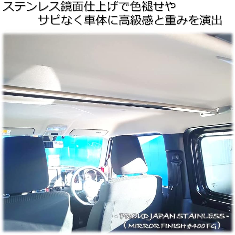 ■Request regarding delivery area We are very sorry, but we do not ship to Okinawa Prefecture. We ask for your understanding in advance because the products we handle are large and there is a high possibility of damage to the cardboard during long-distance transportation. If you receive an order by mistake, we will cancel your order. Thank you for your understanding and cooperation. This is our original product designed specifically for JB64/JB74 Jimny. ■Product Profile Jimny has no roof (ceiling) reinforcement, so the body can become distorted or flexed due to frequent driving or driving on rough roads, which can later lead to poor airtightness and abnormal noises in the body (glass, doors, etc.). . Roll bars are effective, but they require a lot of work, such as drilling holes in the floor, removing and processing the interior lining, and removing the seats, making them very expensive and damaging the car body. This product is a simple and effective interior reinforcement part that can be installed using only genuine (existing) bolt holes without drilling or other processing on the vehicle body. Jimny is a valuable car, so we prioritized the protection of the car body, and this product can be easily installed with just a screwdriver without damaging the car body. It's easy to install, so there's no need to bring it to the store. ■Installation method Remove the genuine assist grip (handle) with a Phillips screwdriver and install using only the genuine (existing) bolt holes. The required number of stainless steel mounting bolts and locking spring washers are included. ■Specifications/Production - All stainless steel (SUS304) No. 400 polished mirror finish - TIG welded followed by electrolytic polishing Each item manufactured in Japan ■Characteristics/Effects - All stainless steel roof directly prevents impact and twisting from the side of the vehicle.・All stainless steel does not rust and is strong enough to not bend even when an adult hangs on it ・All stainless steel allows for long-term use with no maintenance without paint peeling or sunburn ・All stainless steel is strong and can be used to add speakers, etc. Can also be used for fixing - All stainless steel prevents scratches even when hanging fishing equipment, etc. ■Voices from customers - Improved body rigidity and stability - I was surprised that the effect was better than I expected - Corners The rear became more stable when starting up - The squishy ride became more stable - The rigidity of the vehicle body improved and the rattling sound of the glass was reduced - The interior air became more stable and the audio quality improved - Roll bar or interior reinforcing bar - The roll bar is made of iron, but this product is made entirely of stainless steel (t=2.3mm) and is 1.5 to 2.5 times stronger than iron. - The roll bar is made of iron and will rust during the rainy season or when it is humid, but this product is made entirely of stainless steel so it will not rust even if it is submerged in water. -The roll bar is made of iron and painted, but this product has an all-stainless steel mirror finish that looks good and has a sense of luxury and weight. ■Note: If you do not wrap a sponge-like pad around the reinforcing bar pipe during vehicle inspection, your vehicle may not pass. *It is sufficient to use inexpensive items sold at home improvement stores, etc. to fix them with tape. ■Additional notes: We do not accept inquiries by phone, so please send us an email using the inquiry form.