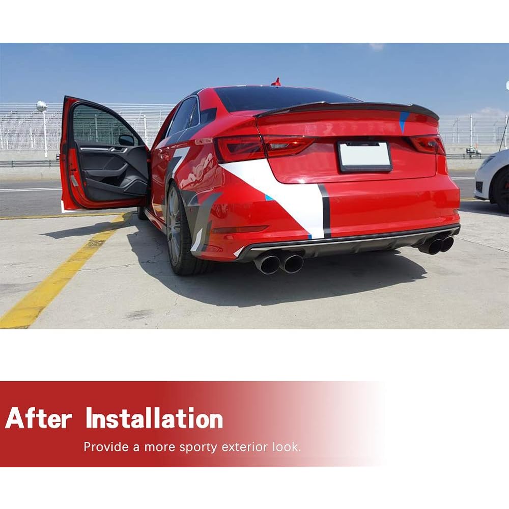 ●Functionality: Immediately removes airflow clinging to the rear end of the vehicle, reducing air resistance and improving fuel efficiency. ●Material: Carbon fiber The advantage of real carbon is that it matches any body color; Package: 1 piece; ●Dress up: Luxury real carbon clear gel finish rear spoiler! ●How to install: Fix with the included double-sided adhesive tape. *After removing dust, dirt, and oil from the adhesive surface and checking the temporary attachment position, peel off the release paper from the double-sided tape on the back of the product. If possible, warm up the double-sided tape with a hair dryer, then attach and firmly adhere. *When installing, if there are any loose ends etc., please reinforce with strong double-sided tape as necessary. ●Compatible models: Compatible with Audi A3 S3 sedan 2013-2017 models. ★★★ Don't worry if you're not sure if it fits your car. Utilizing our extensive experience and knowledge, we will accurately answer your questions and concerns. If you have any questions, please feel free to contact us via email at any time. *Due to minor changes, grades, specifications, etc., it may not be possible to install the product even on the model year listed, so if in doubt, please be sure to check compatibility before ordering. ★★★