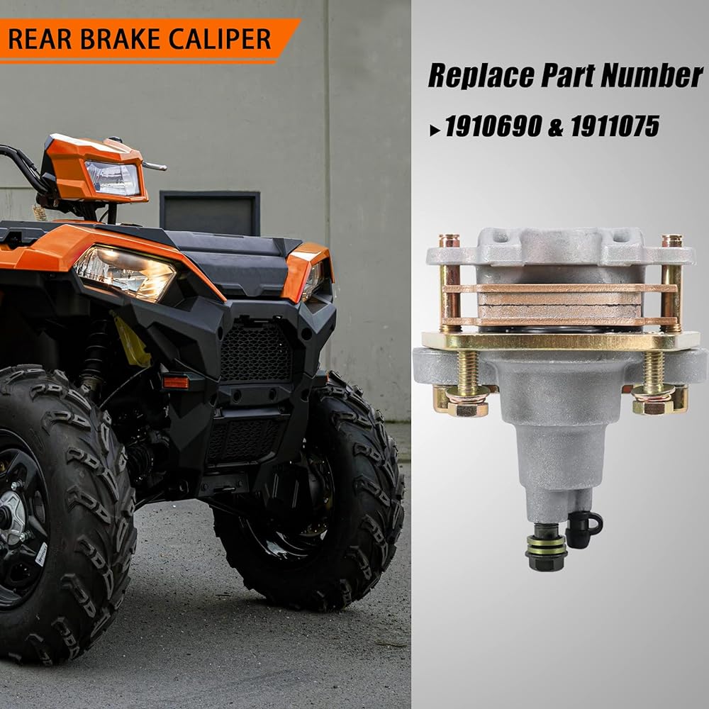 Aftermarket rear brake caliper. Comes with pads for easy installation. Direct replacement for proper fit. Made of high quality materials. Reference Part Number: 1910690 & 1911075. Polaris Models: 2003-2005 Sportsman 400, 2006-2007 Sportsman 450, 2003-2006 Sportsman 500, 2007-2009 Sportsman 500 (Fits HO & EFI, but not X2 EFI). 2003-2005 Sportsman 600, 2002-2006 Sportsman 700 700 MV/EFI, 2010 Sportsman 700 Military, 2005-2009 Sportsman 800 4x4, 2005-2014 Sportsman 800 6x6