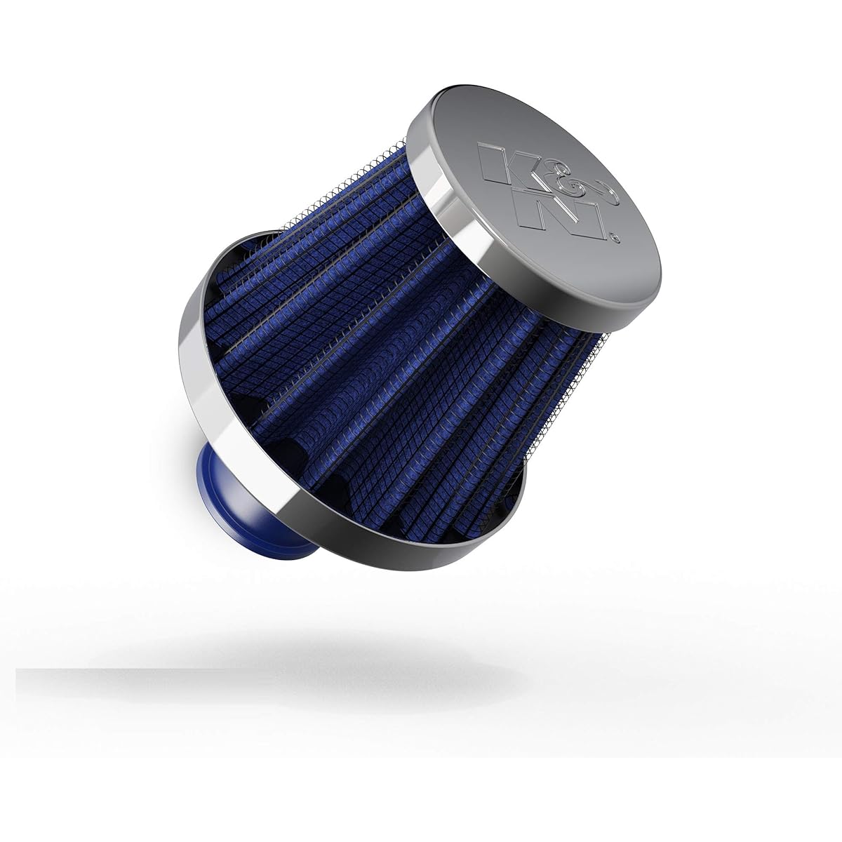 K&N crankcase vent filters are perfect for racing applications, vintage cars or individuals who want to add some aesthetics to their classic carbureted engine. The cone-shaped crankcase vent filter has a K&N embossed chrome top and chrome base. The flange clamps directly onto a 3 /8 to 1/2 Inch metal or plastic tubing where venting is needed. Constructed with a blue colored synthetic media it can be cleaned and reused repeatedly. Attachment : Clamp On Shape : Round Tapered Top Style : Metal Diameter (IN) : 2 Inch Length (IN) : Not Applicable Width (IN) : Not Applicable Height (IN) : 1-3/4 Inch Color : Blue Material : Cotton Gauze Includes Grommet : No.
