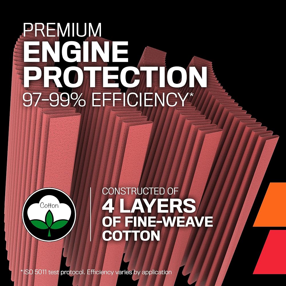 ENGINEERED POWER: State-of-the-art filtration media provides up to 50% more airflow than disposable paper filters, increasing power and acceleration. A clogged or dirty air filter can reduce your car's acceleration by up to 10%. Easy to install: Oiled and built with a simple clamp-on design. One of the easiest and most cost-effective upgrades for your car for a quick performance boost. SAVE MONEY: K&N's high flow replacement air filters can save you $250 over 10 years by avoiding disposable filters. Environmentally friendly: Using washable and reusable products reduces replacement waste. K&N filters last longer than 10 disposable filters. WORLD CLASS PROTECTION: Pushes the limits of engine protection by protecting your engine from harmful contaminants. Low maintenance design: 50,000 miles before first cleaning under normal highway driving conditions. HIGH QUALITY: Made in the USA. RACE TESTED: Official NASCAR air filter. Trusted on the racetrack made for your car. Peace of mind: 1 year limited warranty Show more items