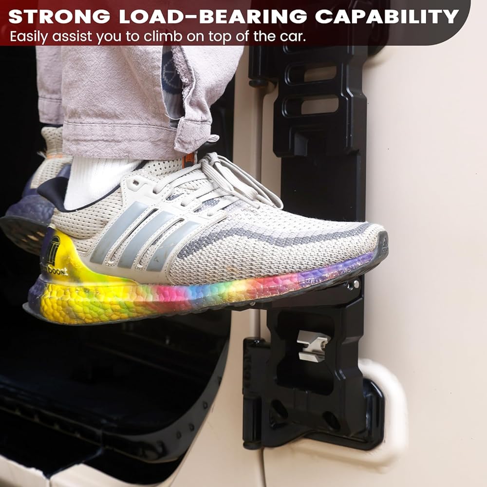 KANGIKX Door Hind Foot Step JEEP WRANGLER 2007-2023 JK JK JL JLU & GLADIATOR JT Aluminum Allenting Folding Foot Pedal Roof Top Access 1 Black 1 piece (2021 Gladiator is not suitable)
