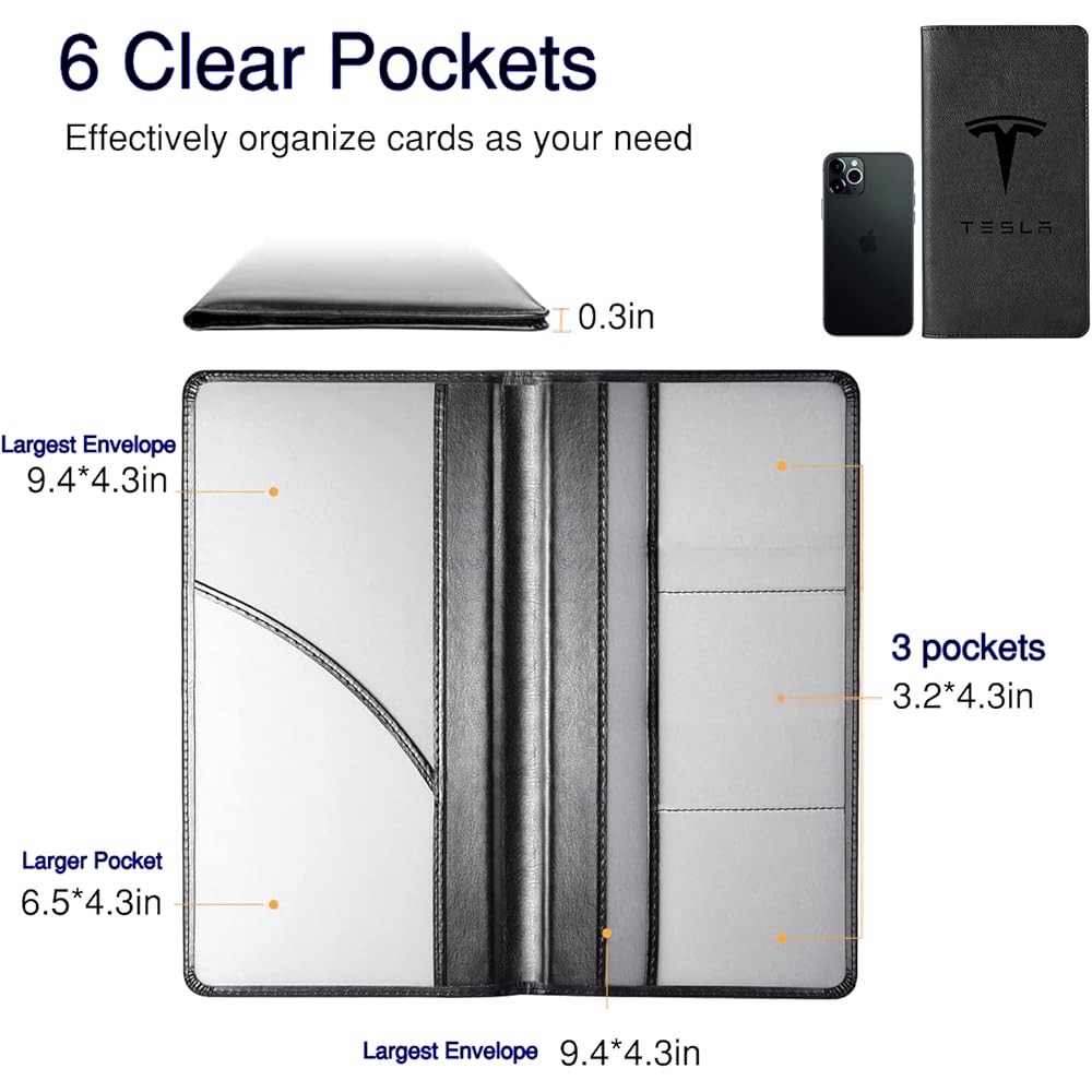 Brand: KIKIMO. Product: Vehicle Registration and Insurance Holder Customized for Tesla and perfect for installation in the glove box or console. Specification: 25*13.5*1cm (9.87*5.33*0.39 inch) Weight: 122g. Package Contents: 1 x Registration and Insurance Card Holder. Other Features: Are your car documents always a mess? A document holder will solve the mess. Exactly what you need, 6 sleeves. You can organize your important documents properly. The large pockets of the car document holder can hold 2 pockets for vehicle registration, 3 small pockets for driver's license, ID cards, AAA cards, business cards, receipts, key contact information cards, etc. KIKIMO provides 1 year warranty service. If you have any questions, please contact us.