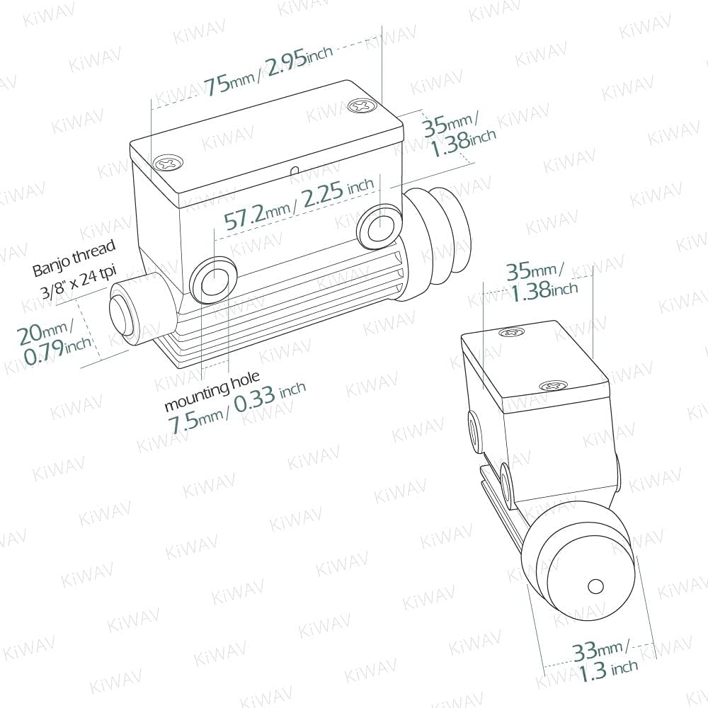 5/8" bore Kelsey type master cylinder Perfect for 3/8" x 24 banjo bolts Reference OEM part number: 42453-82A, 42454-82 Cylinder bore: 5/8" Made in Taiwan