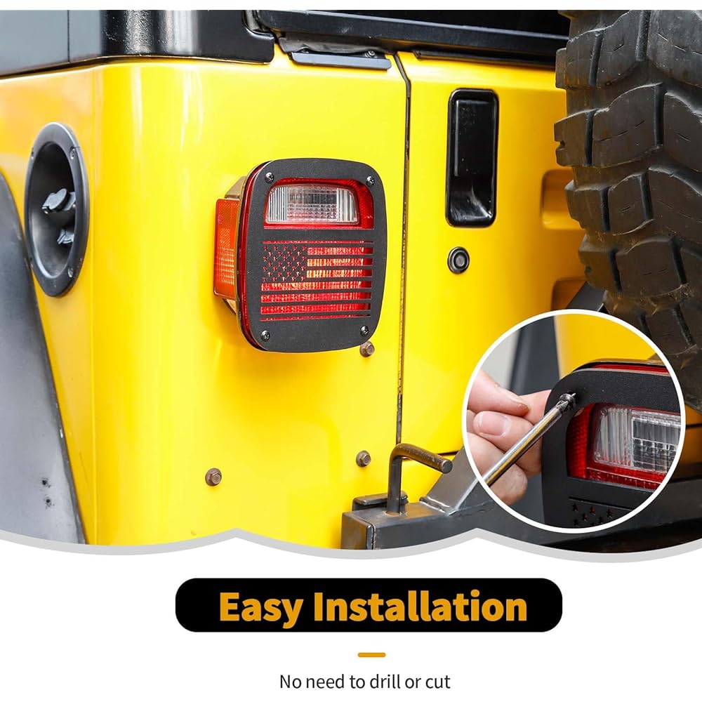 【Perfect Fit】Fit for Jeep Wrangler TJ 1997-2006. 【High Quality】Made of high quality metal. 【High and Low Temperature Resistant】Paint baking on the surface, will not rust, corrode or peel. 【Easy to Install】Easy to install, no drilling required, enhance the look and style of your car. Protect your tail lights from damage. [Guarantee] Admission fee is 30 days free return & exchange within 365 days