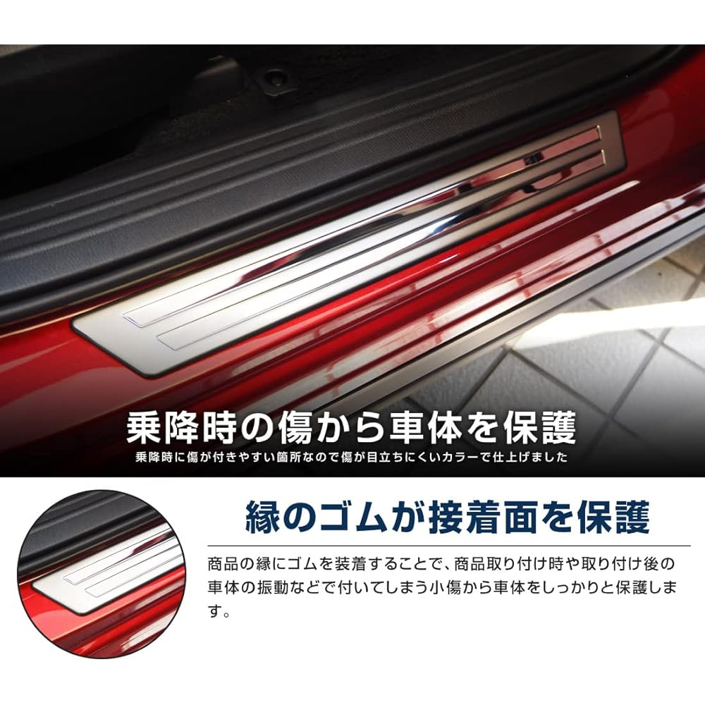 Compatible models: Mazda CX-8 KG series early/late (from December 2017) Compatible grades: Compatible with all grades Material: Stainless steel (SUS304), color: Silver hairline External step part exclusively for Mazda CX-8 This is a protective part to be installed. Securely protects areas that are easily trampled and scratched when getting on and off. A protective rubber is attached to the outer circumference of the product, which reduces contact between the product and the vehicle body and is designed to prevent scratches. MAZDA CX-8 CX8 exclusive custom parts exterior aero accessories side scuff door step protection