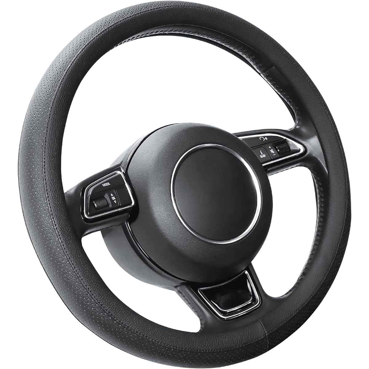 SEG Direct Steering Wheel Cover Auto Steering Wheel Cover Anti-Slip Microfiber Leather for Outer Diameter 35.5-36cm Black