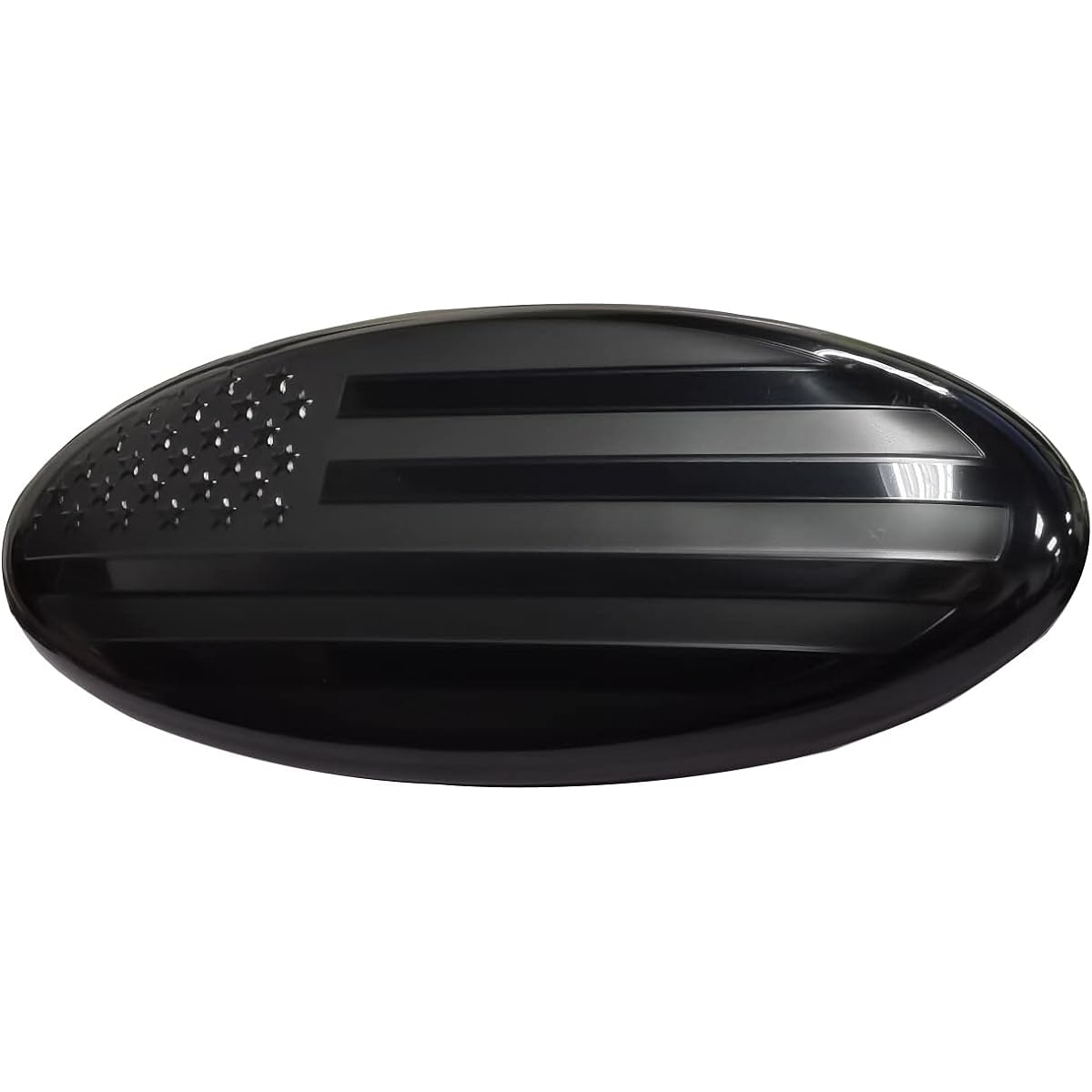 Front Grill Rear Tailgate Emblem 2004-2014 F150 2011-2014 Edge 2011-2016 Explorer 2006-2011 Ranger 2007-2014 Expedition American Flag Emblem Black 1pc 9" Width 3.5" Height Aluminum surface with ABS base, 3M double-sided adhesive Tape for installation. Fits OEM part number 4L34-15402A-CA 8C3Z-1542528-A. Not for use with tailgates with backup cameras. Note: Please remove the center pin for 05-07 F250/F350 grill.